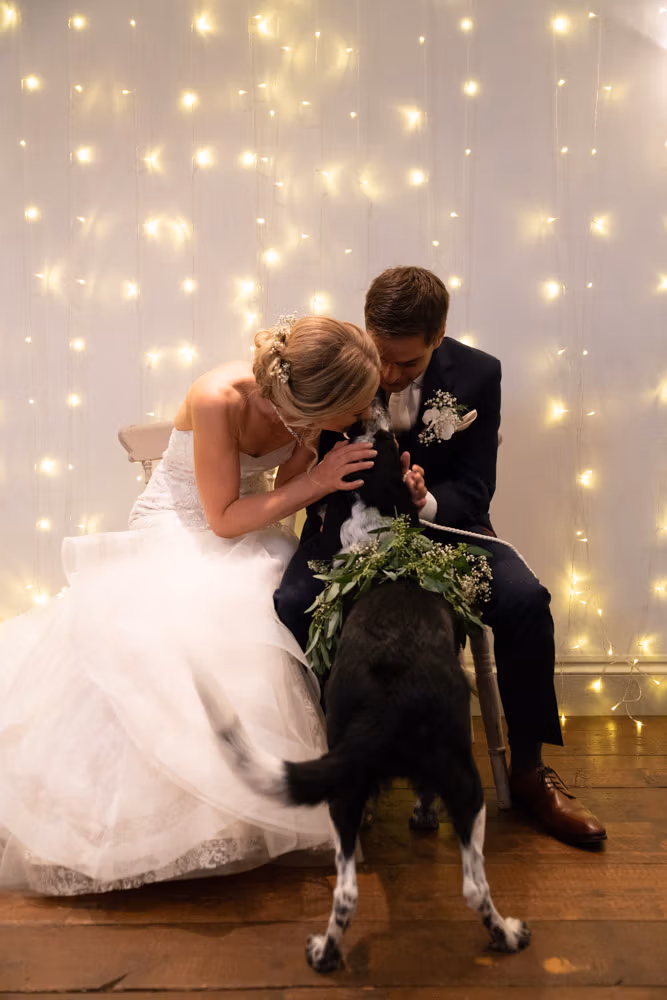 This rustic Yorkshire barn setting, tucked into the hills above the Wharfe Valley, created a calm and natural space for their vows and personal moments.