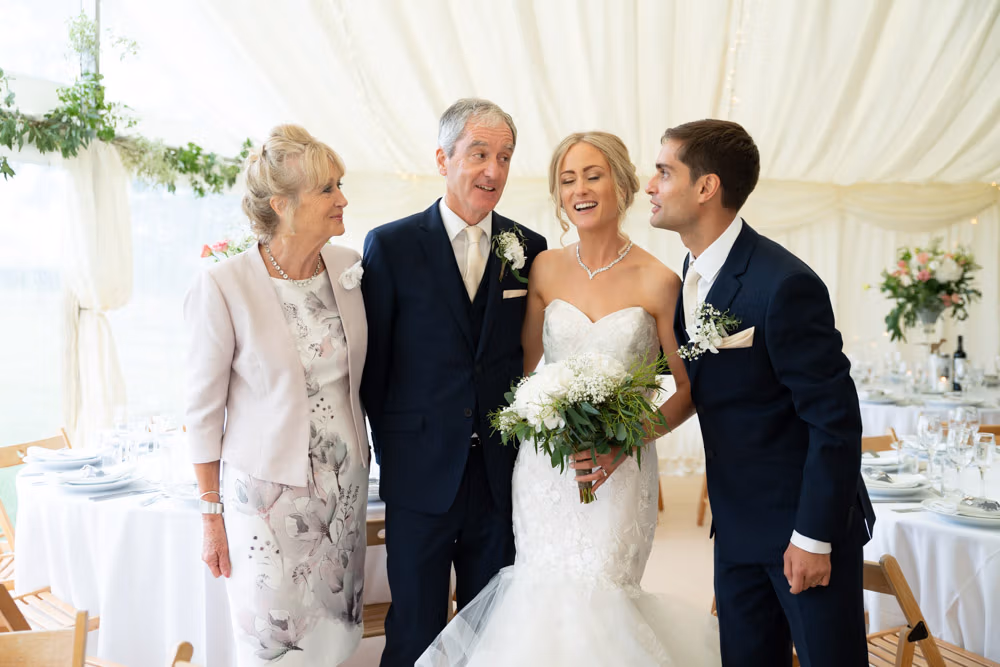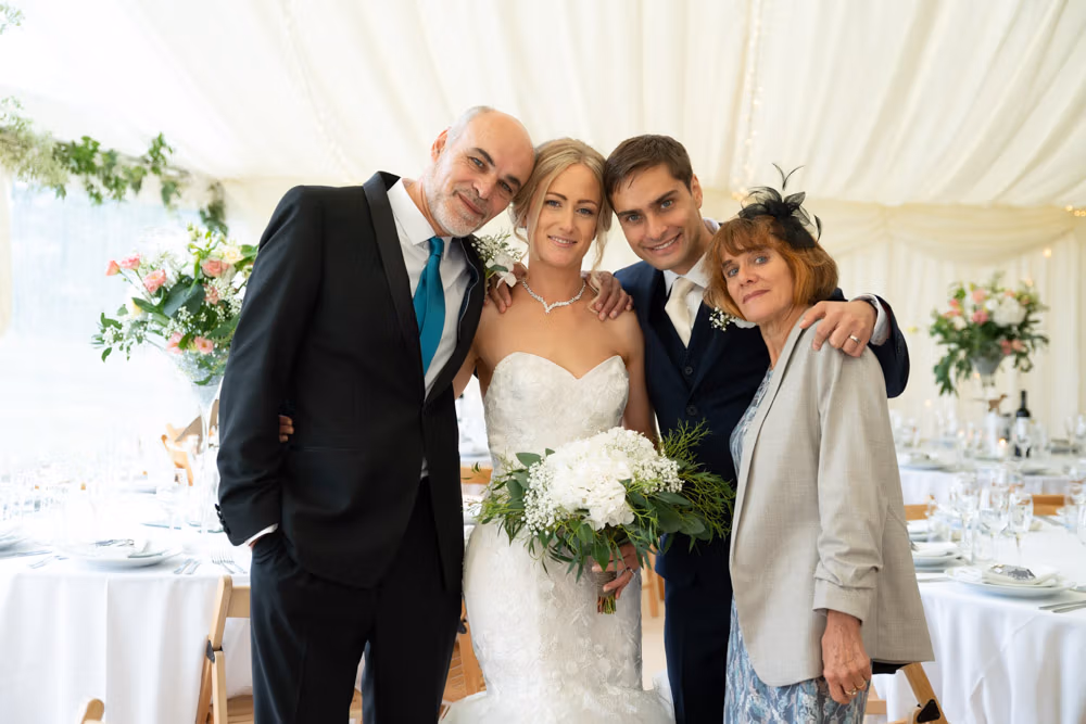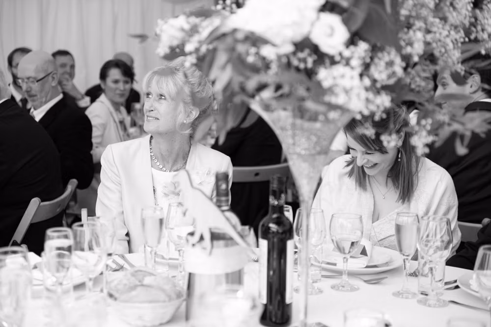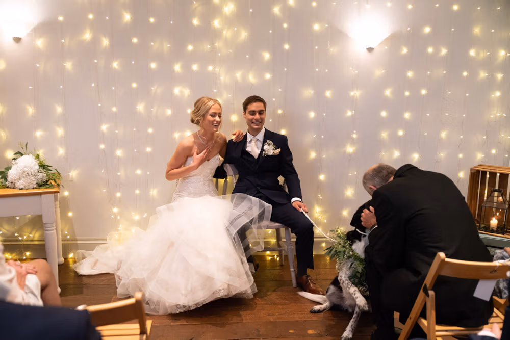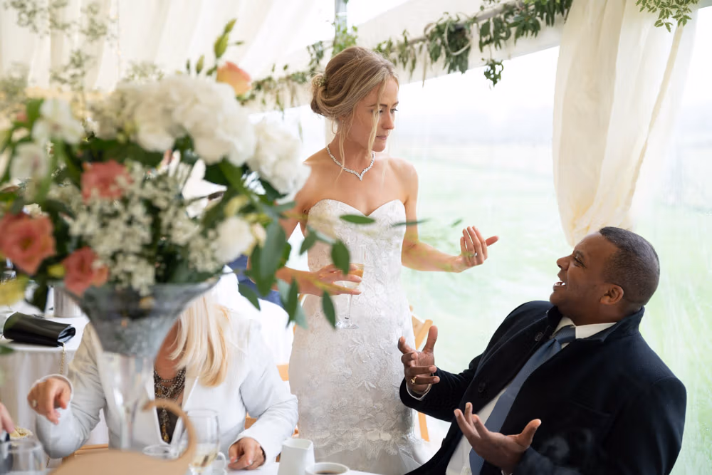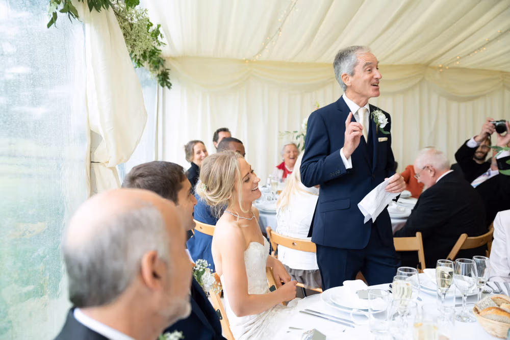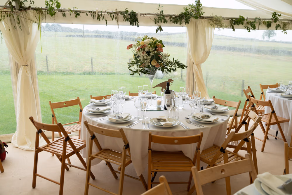 With the marquee set below the barn, the wedding breakfast at The Chilli Barn felt warm, relaxed, and full of atmosphere. Glasses clinked, stories were shared, and the room filled with laughter as friends and family gathered together.