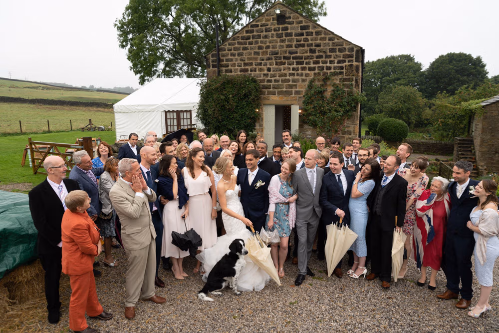 Helen & Adam’s wedding here was photographed in a calm, documentary style — capturing real emotion, movement, and the relaxed atmosphere of a Yorkshire barn celebration shaped by weather and landscape.