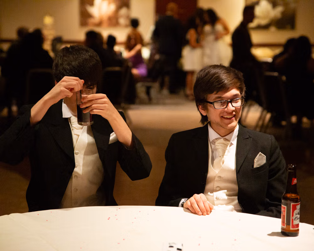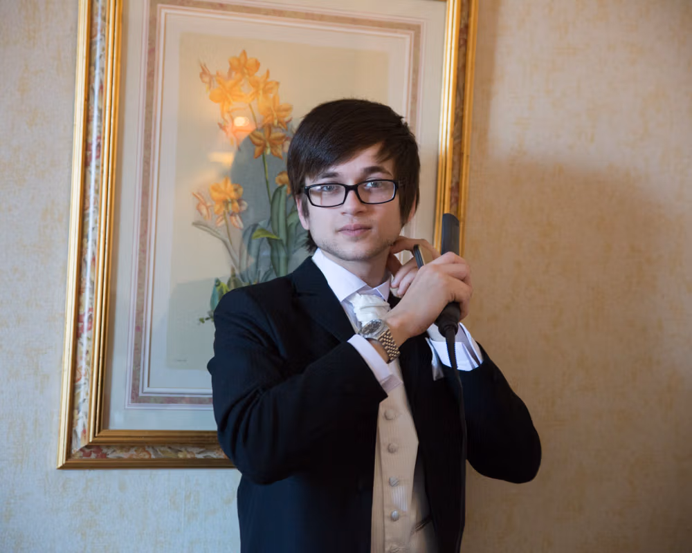 In a quieter corner of the suite, her cousin carefully adjusted the