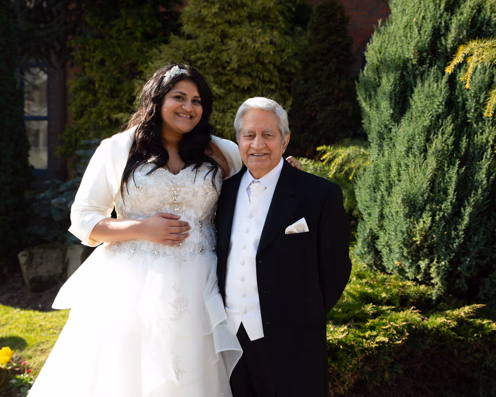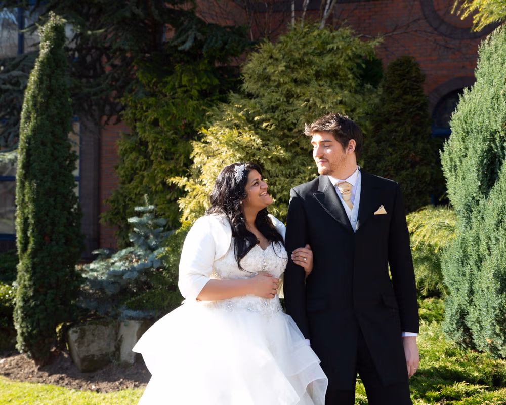 Zehra & Richard brought such warmth to this spring wedding at Crowne Plaza Leeds. The sun showed up for them — lighting the trees in the little garden area behind the venue, where we slipped away for a few quiet portraits. Zehra’s smile is something I remember from their engagement session too — never far away, always genuine.