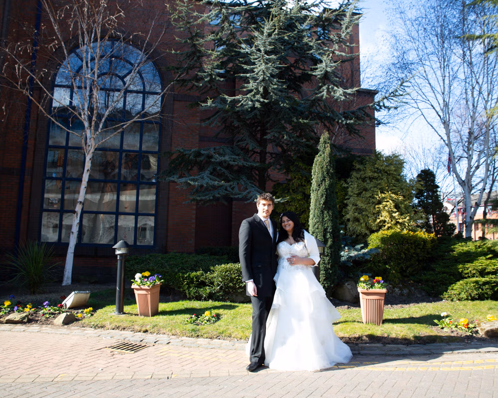 Beautifully captured by a Leeds wedding photographer, Zehra &Richard’s spring wedding at the Crowne Plaza Leeds combined city views, soft sunlight, and a tranquil garden space perfect for relaxed couple portraits.