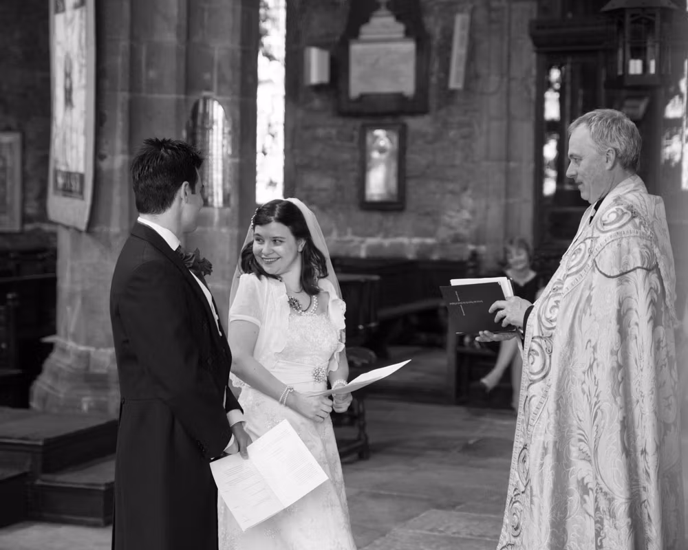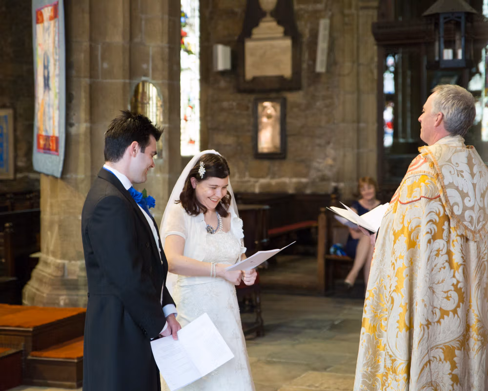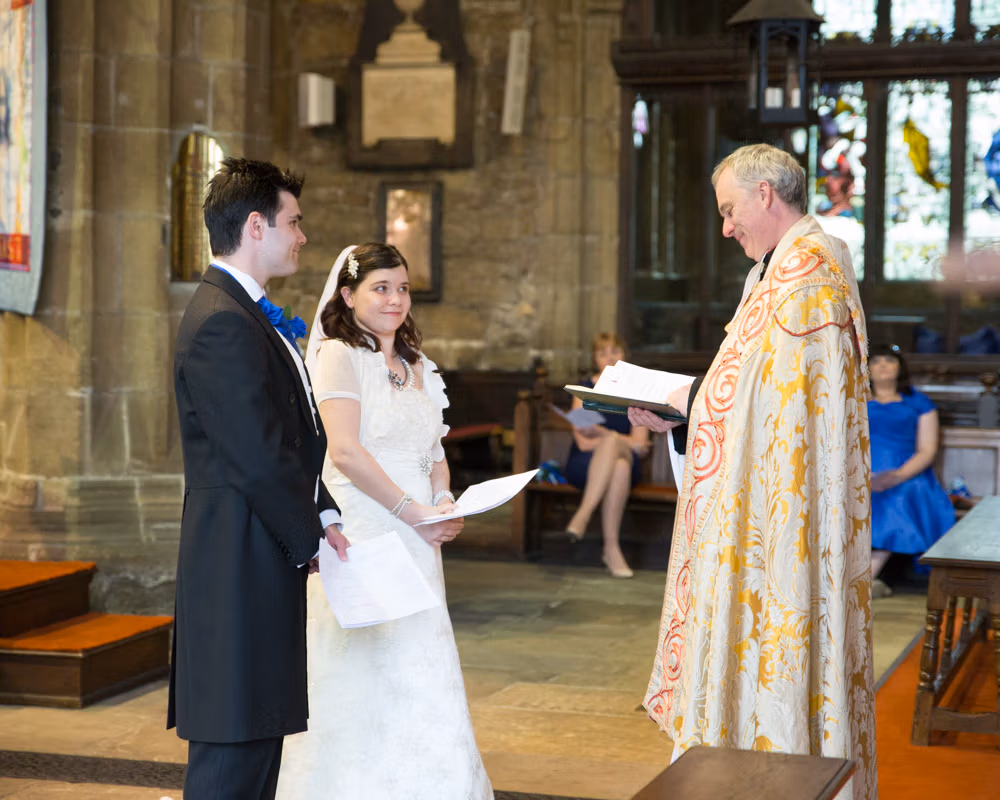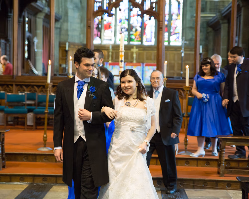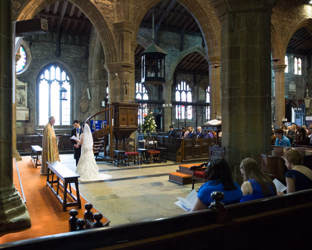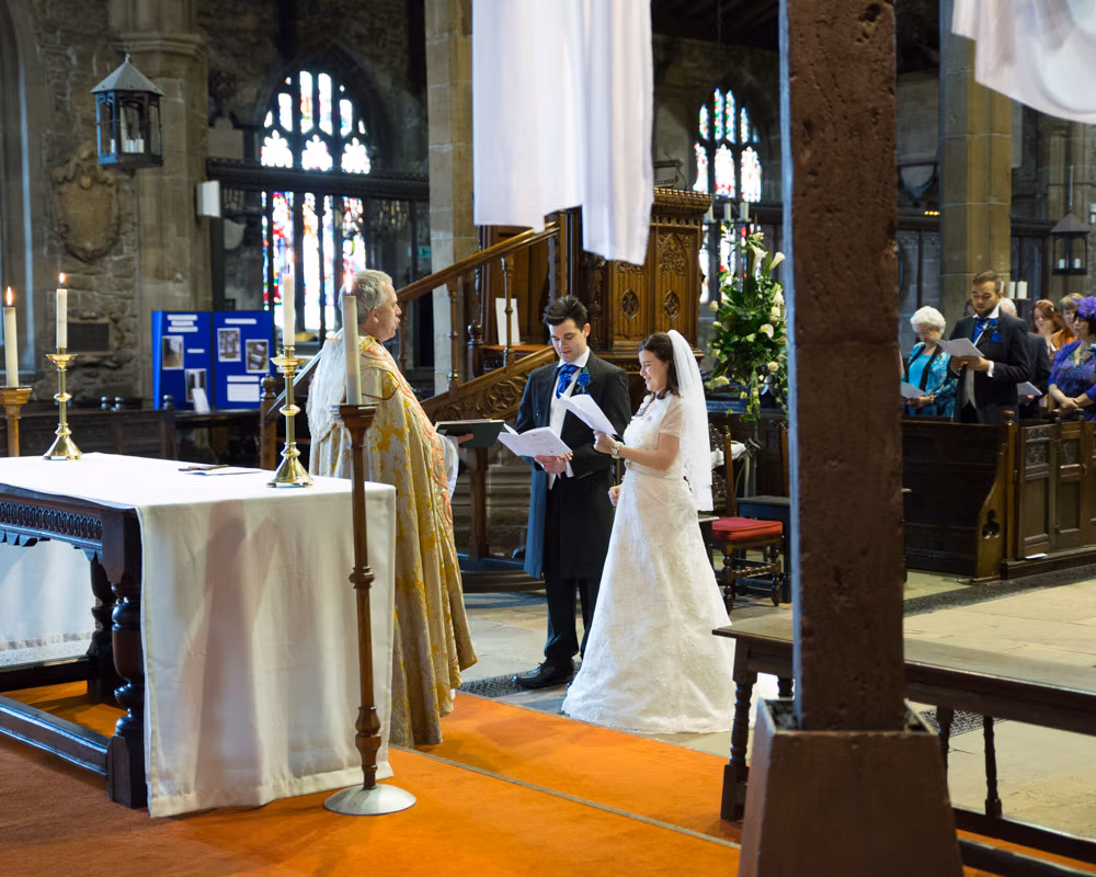 Halifax Minster is one of the most striking and historic places I’ve ever photographed a ceremony. The space feels ancient and sacred, with towering stone columns, stained glass, and a sense of stillness that made Claire & Tom’s vows all the more moving.