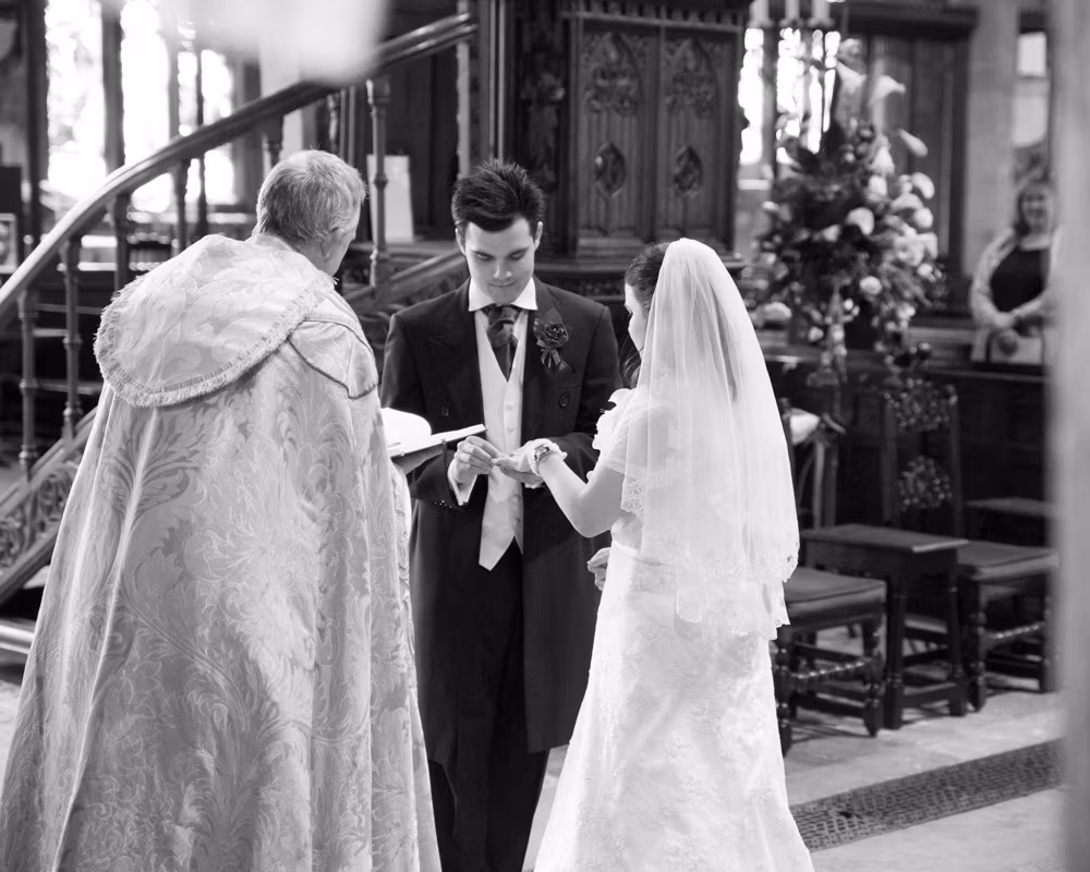 At the altar, the couple beamed. The minister welcomed everyone, setting the tone for a ceremony full of warmth and connection. A beautiful reading from both mothers, shared smiles between Claire and Tom, and a heartfelt exchange of rings — every moment felt personal and deeply rooted in love.