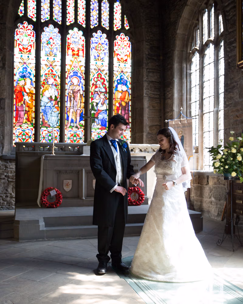 The April sun was kind that morning. I arrived early to capture the beautiful details of Halifax Minster — the sweeping facade, the stained glass glowing quietly inside, and that unmistakable stillness before the guests begin to gather.