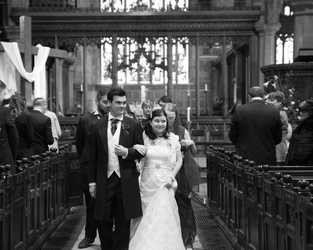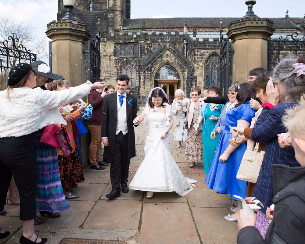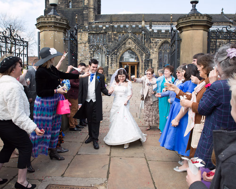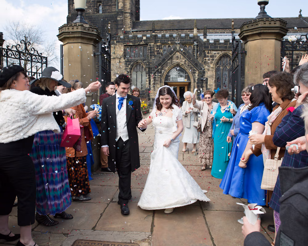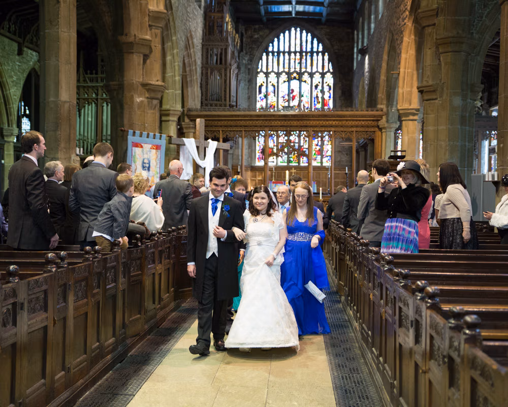 Claire & Tom’s wedding day was filled with character, creativity, and the fresh calm of early spring. Their ceremony took place beneath the soaring gothic arches of Halifax Minster — a stunning, historic venue alive with light, music, and laughter.
