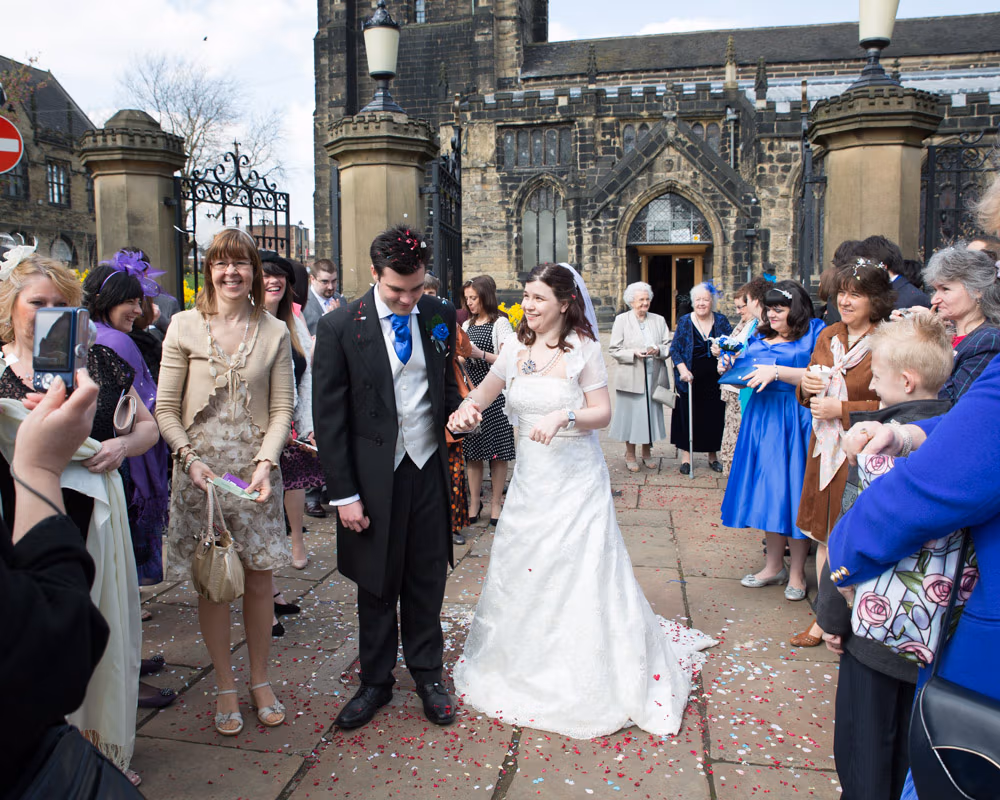 Her dad walked proudly beside her, and the love between them was obvious. From behind the camera, I already knew this would be one of the most memorable weddings I’d ever photograph — right here in the heart of Halifax, not far from my base in Leeds.