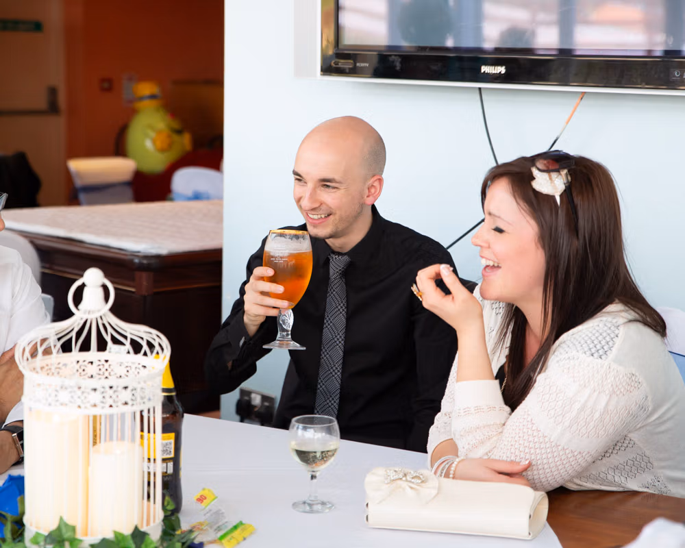 The bus pulled up outside the Sportsman Inn & Leisure, and one by one, guests spilled out — still smiling from the day’s adventures. Claire and Tom were the last to arrive, greeted by the same happy energy that had carried through since the morning. Even the TARDIS and the cake had made it safely here.
