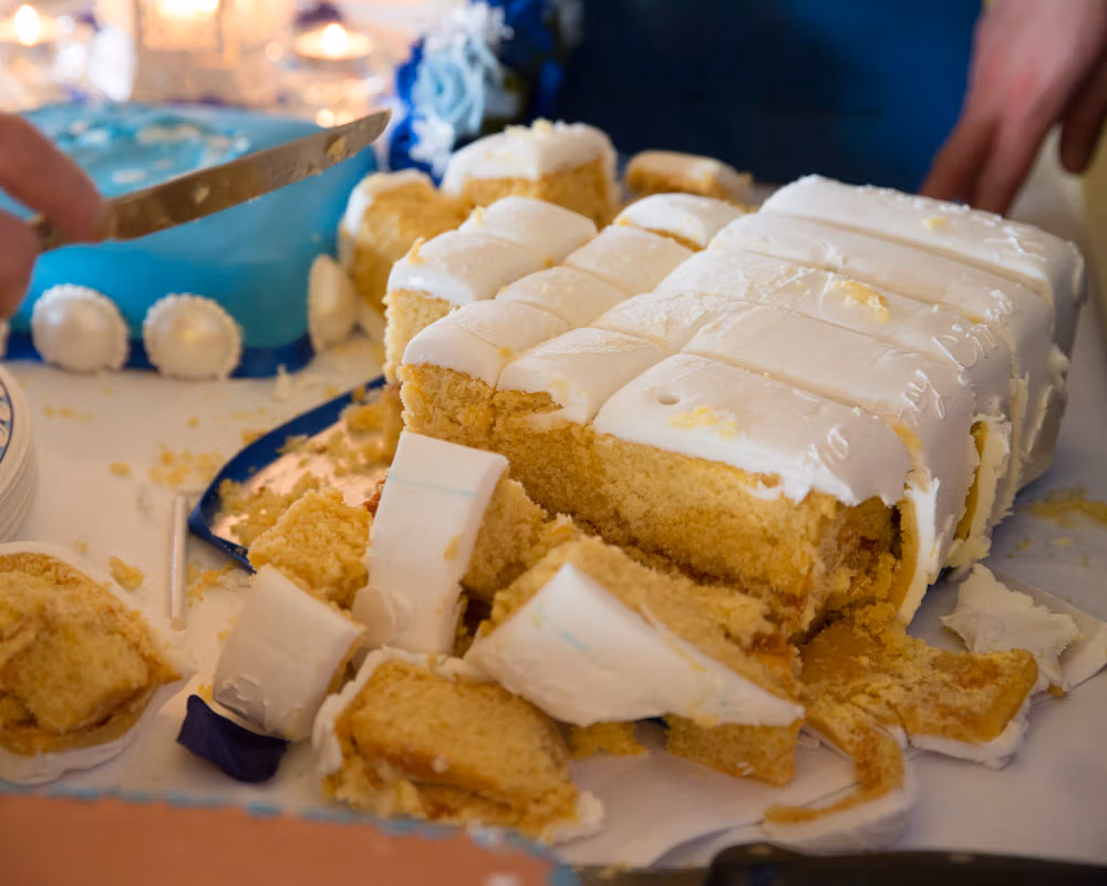 The cake-cutting turned into a moment no one will forget — laughter erupting as Tom ended up with a generous helping of cake across his face. Classic.