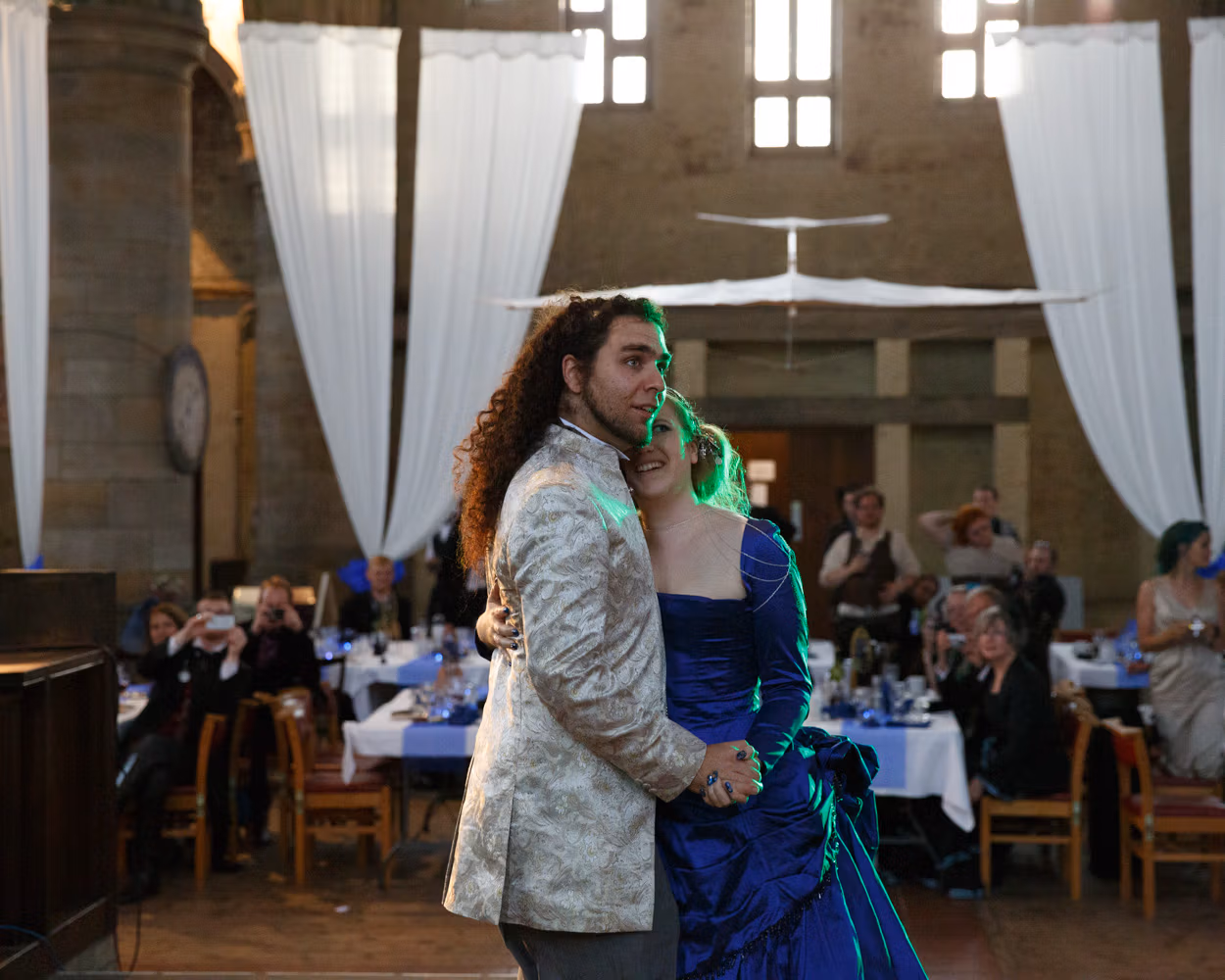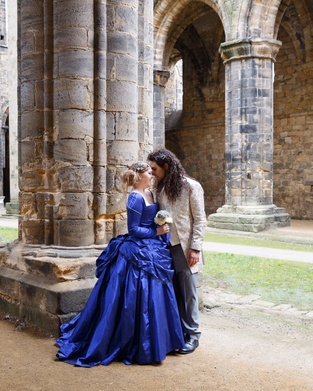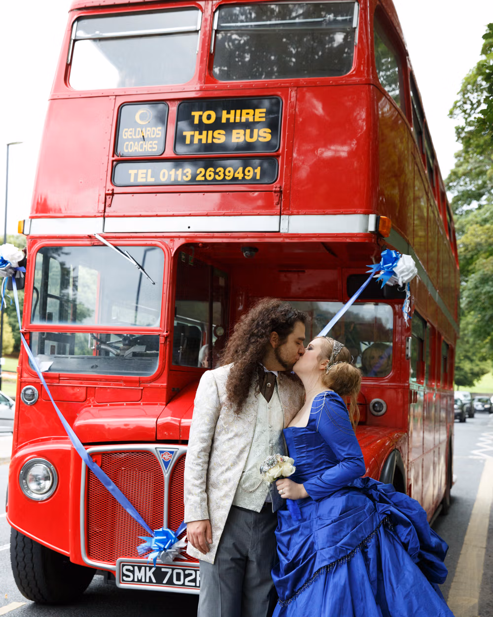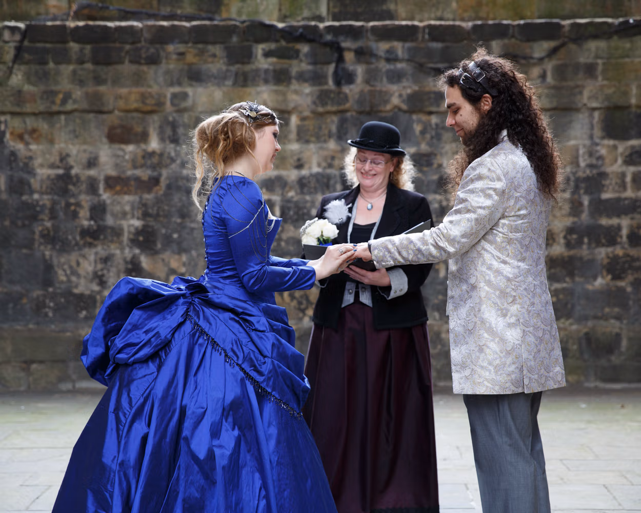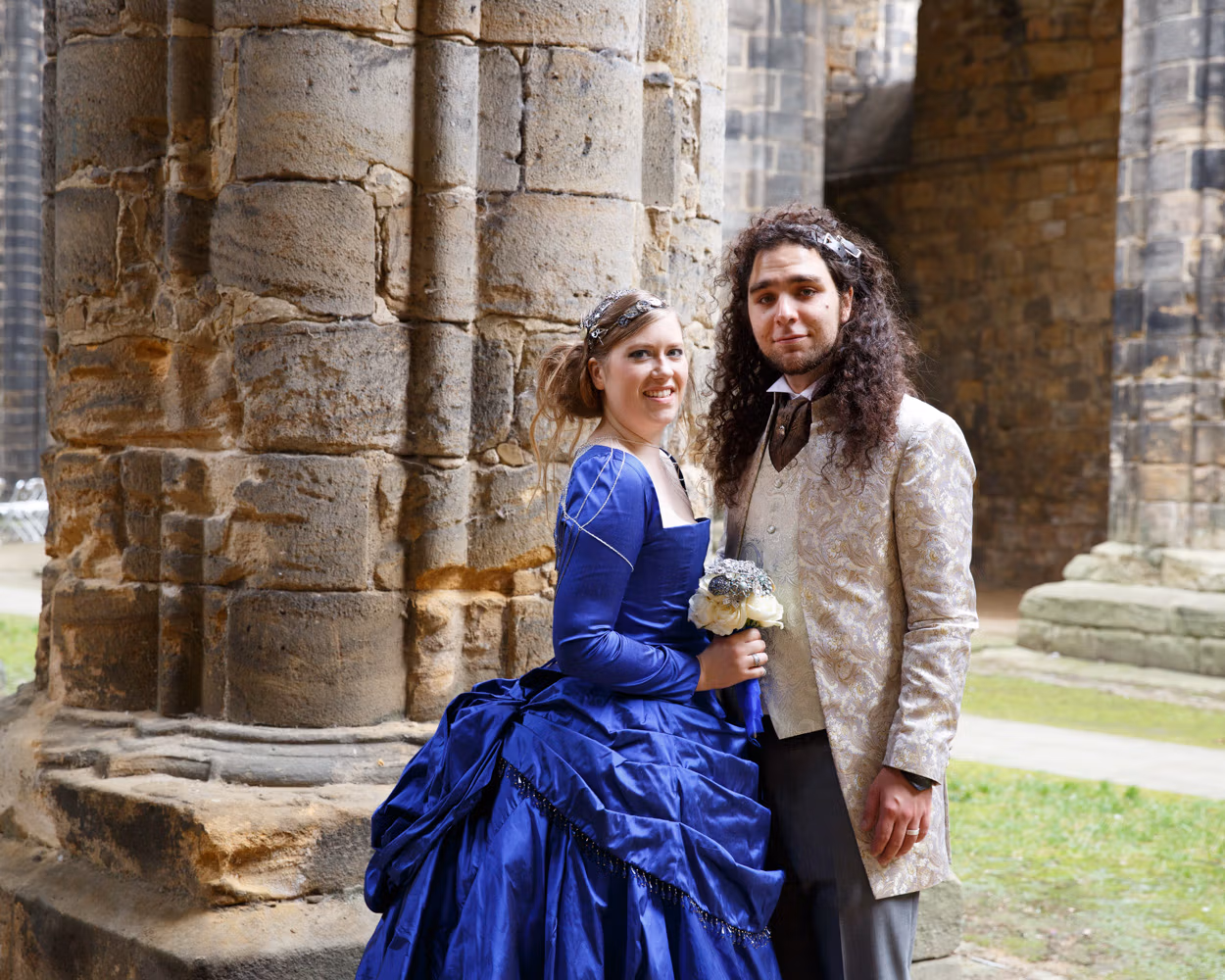 Linsey and Chris chose two striking Leeds wedding venues for their day — Kirkstall Abbey and Left Bank Leeds. Kirkstall Abbey sits just a short walk from home for me, while Left Bank Leeds, a deconsecrated church on Cardigan Lane, became the setting for their evening celebration. I hadn’t encountered a steampunk wedding before this one, but from the moment I arrived and began photographing the colour, detail, and personality, it was clear this was going to be one of the most enjoyable weddings I’d documented.