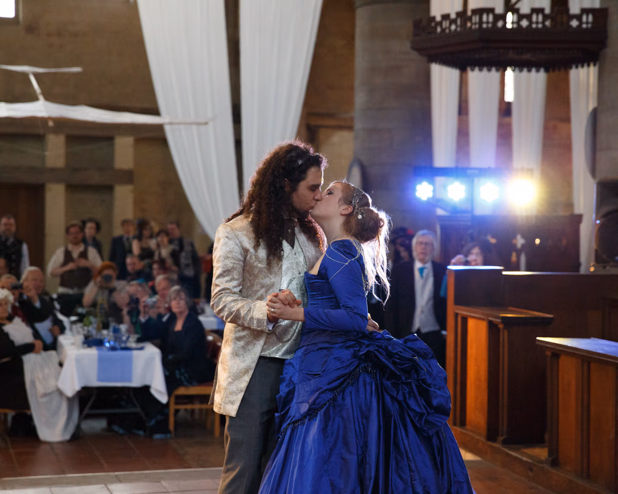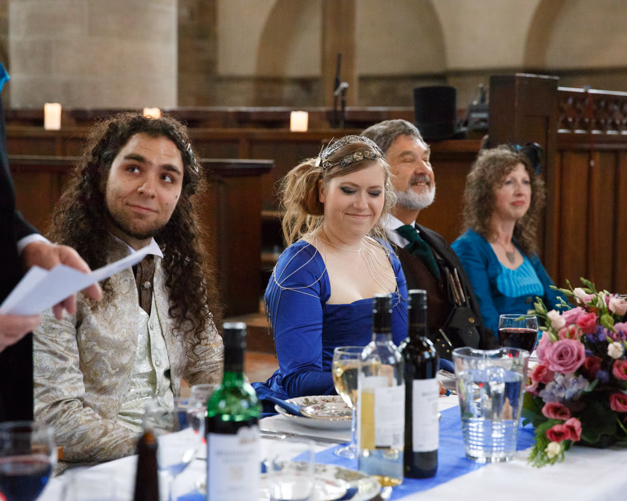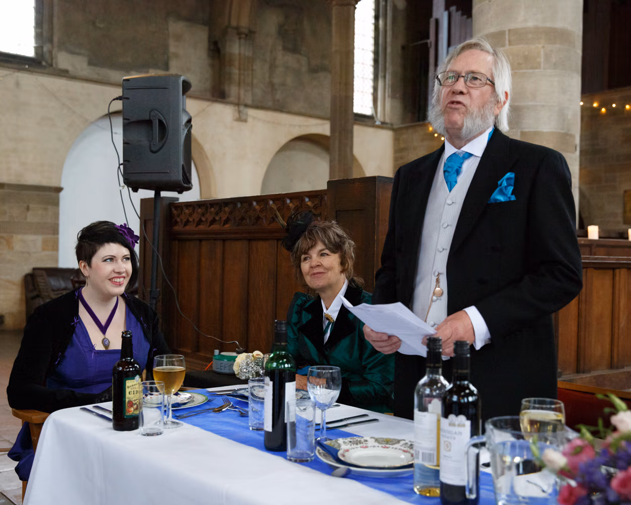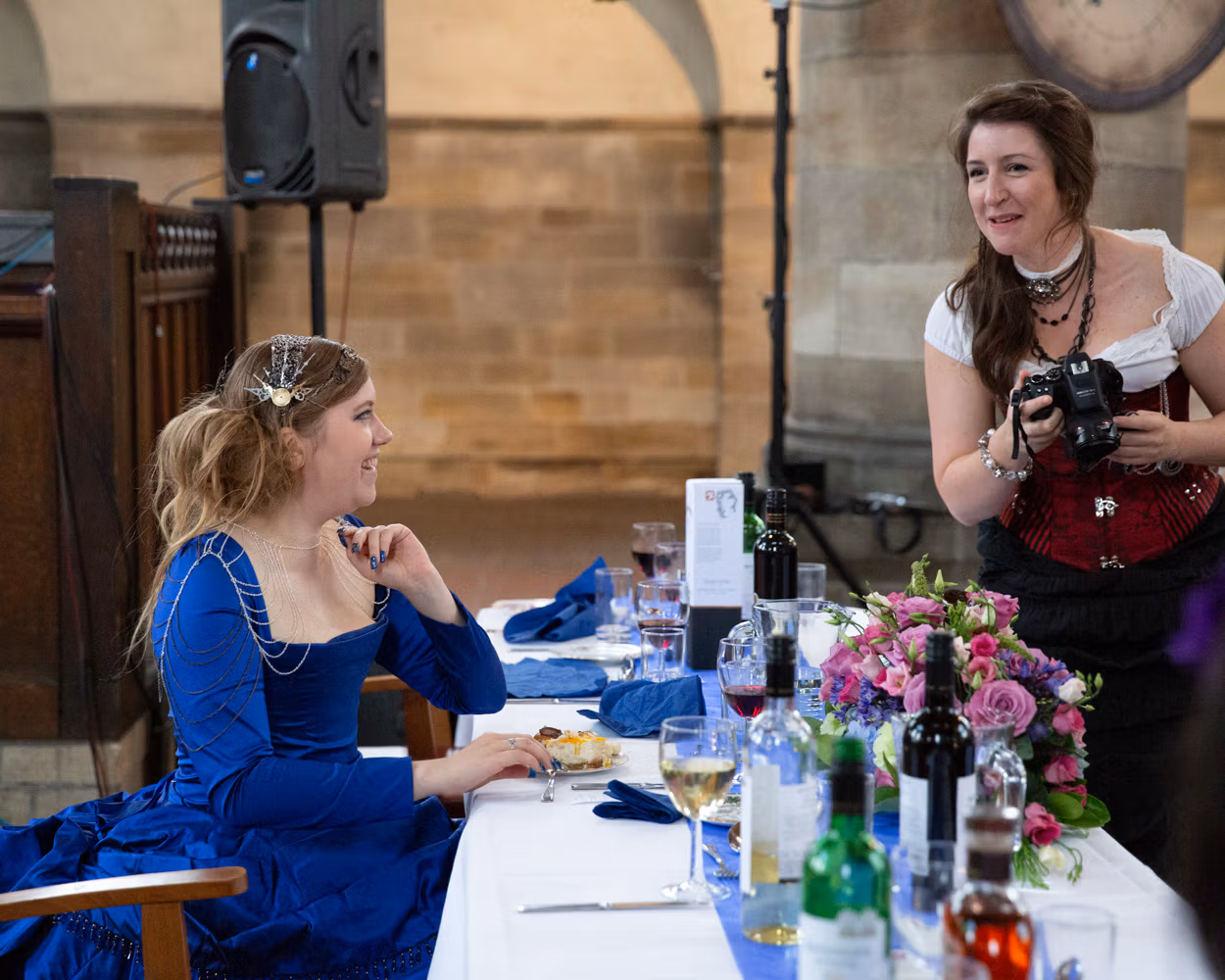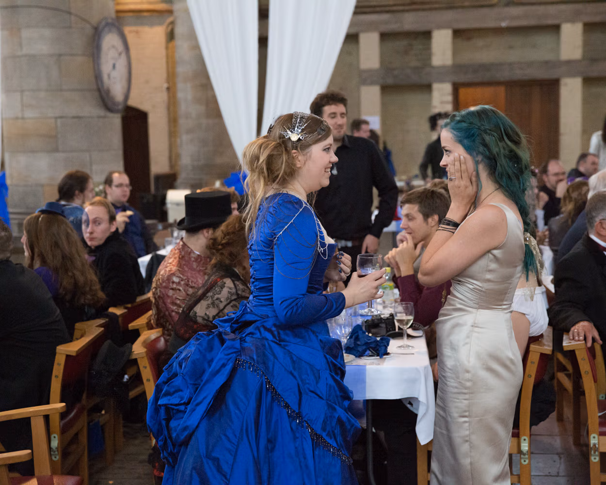 Linsey and Chris chose two striking Leeds wedding venues for their day — Kirkstall Abbey and Left Bank Leeds. Kirkstall Abbey sits just a short walk from home for me, while Left Bank Leeds, a deconsecrated church on Cardigan Lane, became the setting for their evening celebration. I hadn’t encountered a steampunk wedding before this one, but from the moment I arrived and began photographing the colour, detail, and personality, it was clear this was going to be one of the most enjoyable weddings I’d documented.