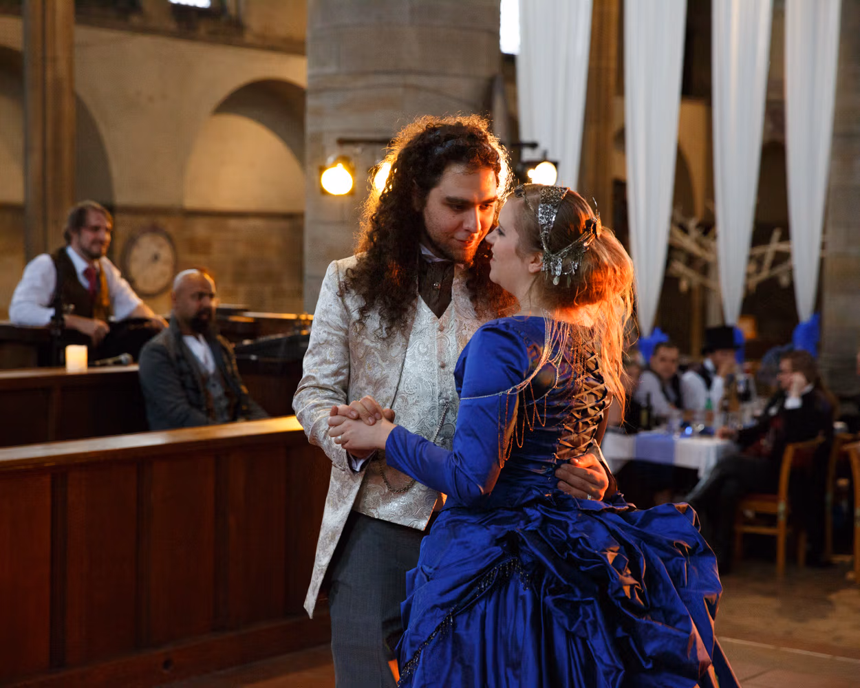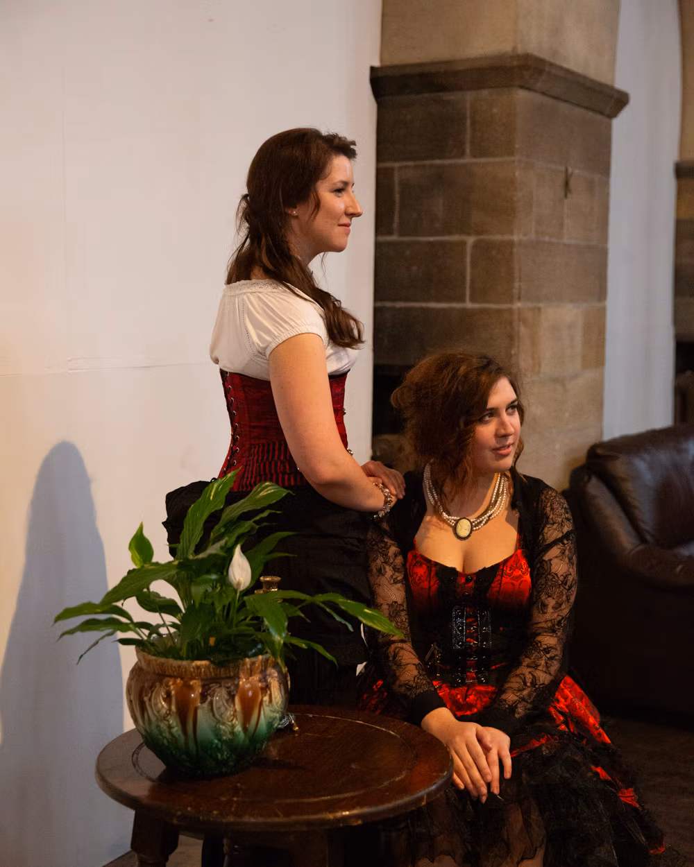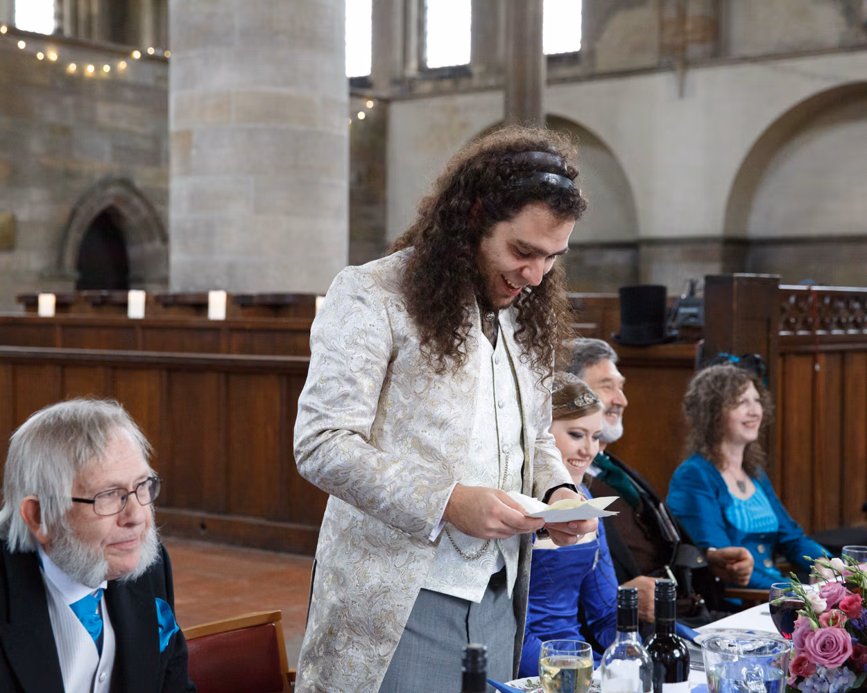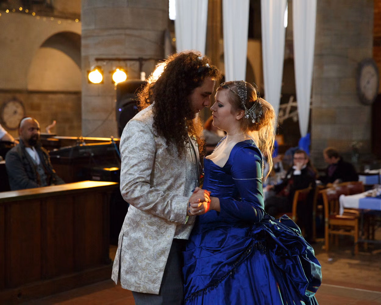 Linsey and Chris chose two striking Leeds wedding venues for their day — Kirkstall Abbey and Left Bank Leeds. Kirkstall Abbey sits just a short walk from home for me, while Left Bank Leeds, a deconsecrated church on Cardigan Lane, became the setting for their evening celebration. I hadn’t encountered a steampunk wedding before this one, but from the moment I arrived and began photographing the colour, detail, and personality, it was clear this was going to be one of the most enjoyable weddings I’d documented.