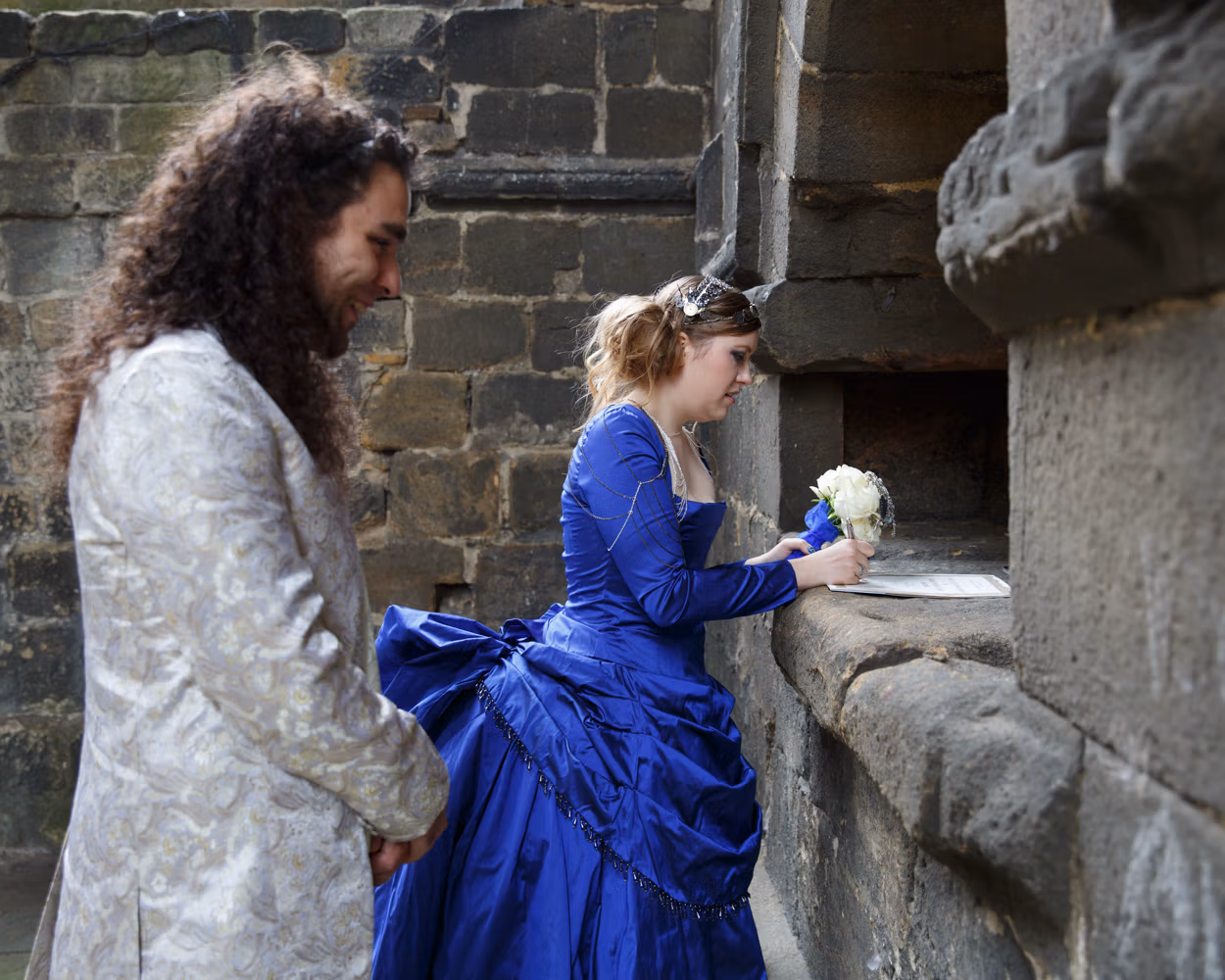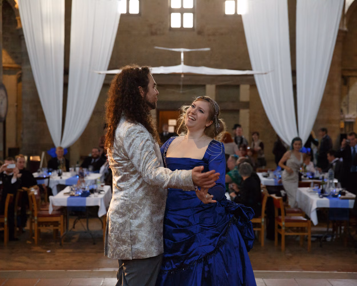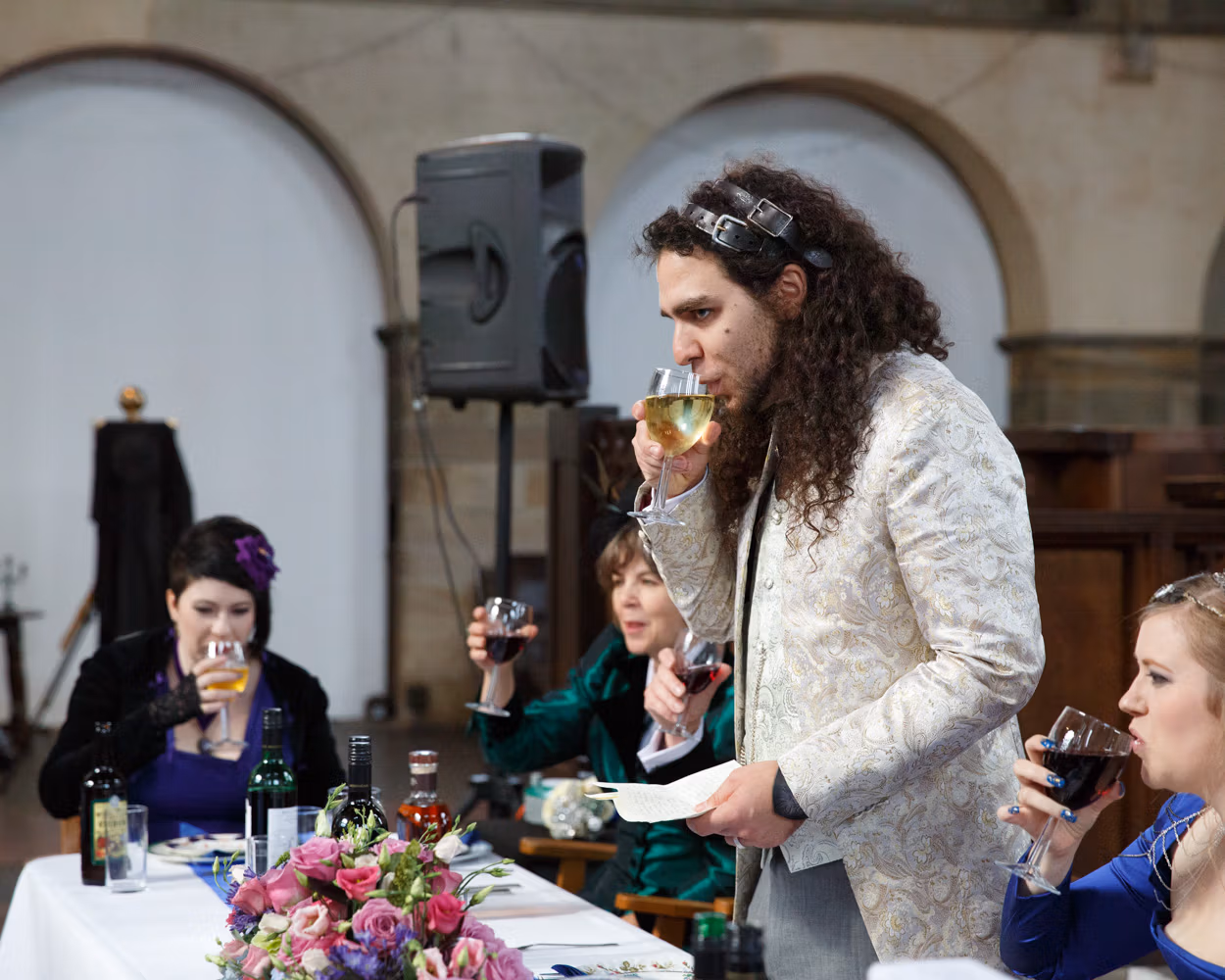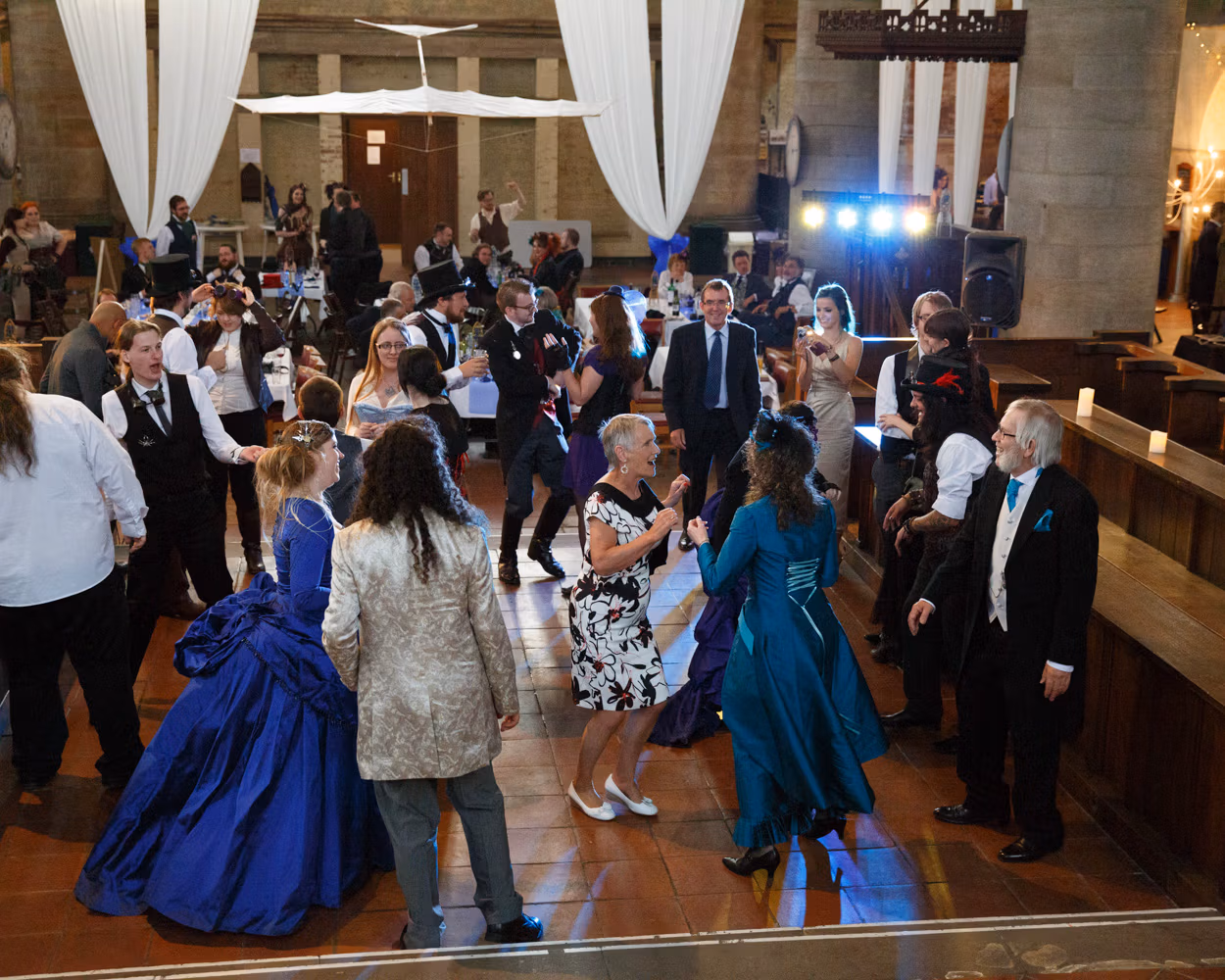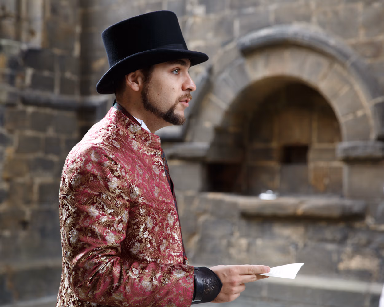Linsey and Chris chose two striking Leeds wedding venues for their day — Kirkstall Abbey and Left Bank Leeds. Kirkstall Abbey sits just a short walk from home for me, while Left Bank Leeds, a deconsecrated church on Cardigan Lane, became the setting for their evening celebration. I hadn’t encountered a steampunk wedding before this one, but from the moment I arrived and began photographing the colour, detail, and personality, it was clear this was going to be one of the most enjoyable weddings I’d documented.