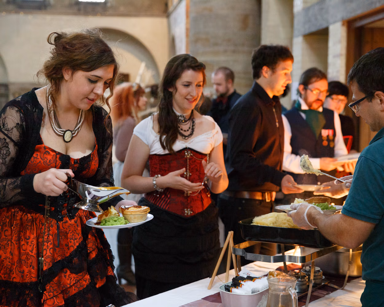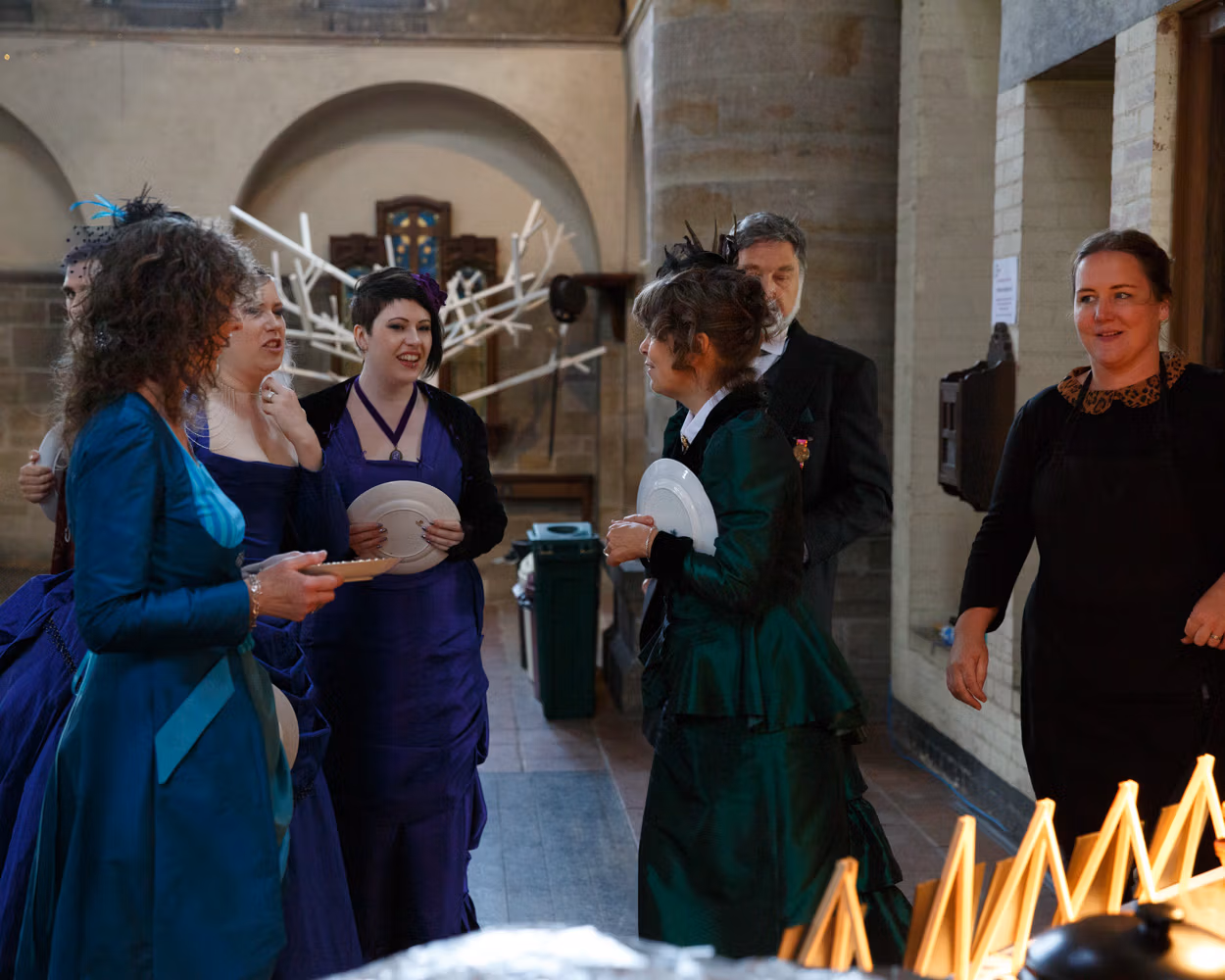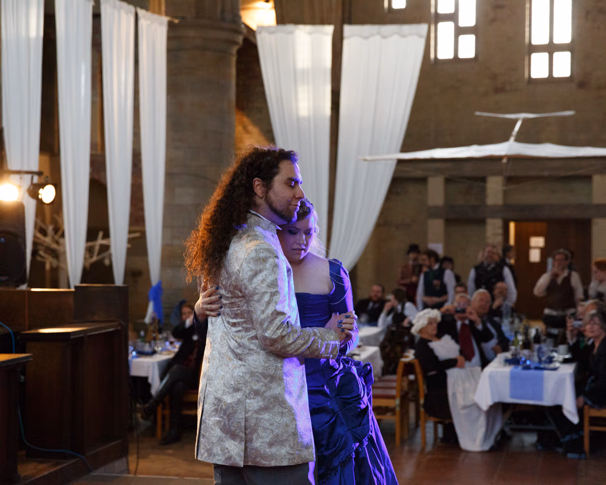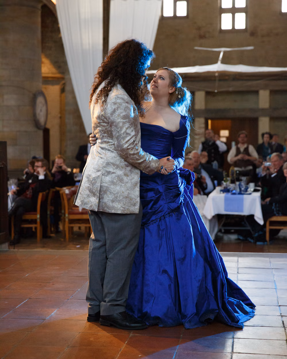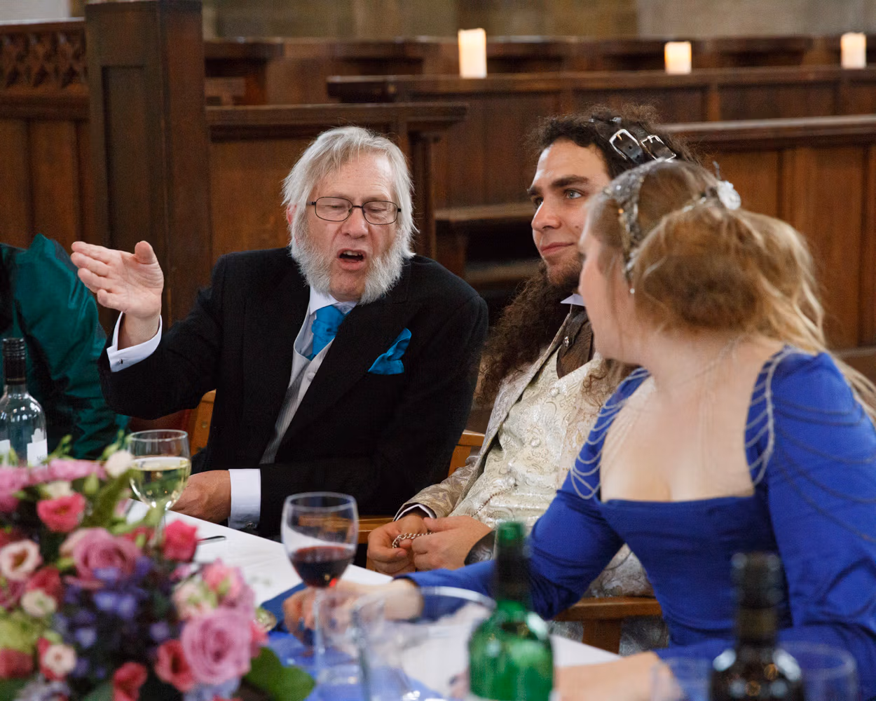 Linsey and Chris chose two striking Leeds wedding venues for their day — Kirkstall Abbey and Left Bank Leeds. Kirkstall Abbey sits just a short walk from home for me, while Left Bank Leeds, a deconsecrated church on Cardigan Lane, became the setting for their evening celebration. I hadn’t encountered a steampunk wedding before this one, but from the moment I arrived and began photographing the colour, detail, and personality, it was clear this was going to be one of the most enjoyable weddings I’d documented.