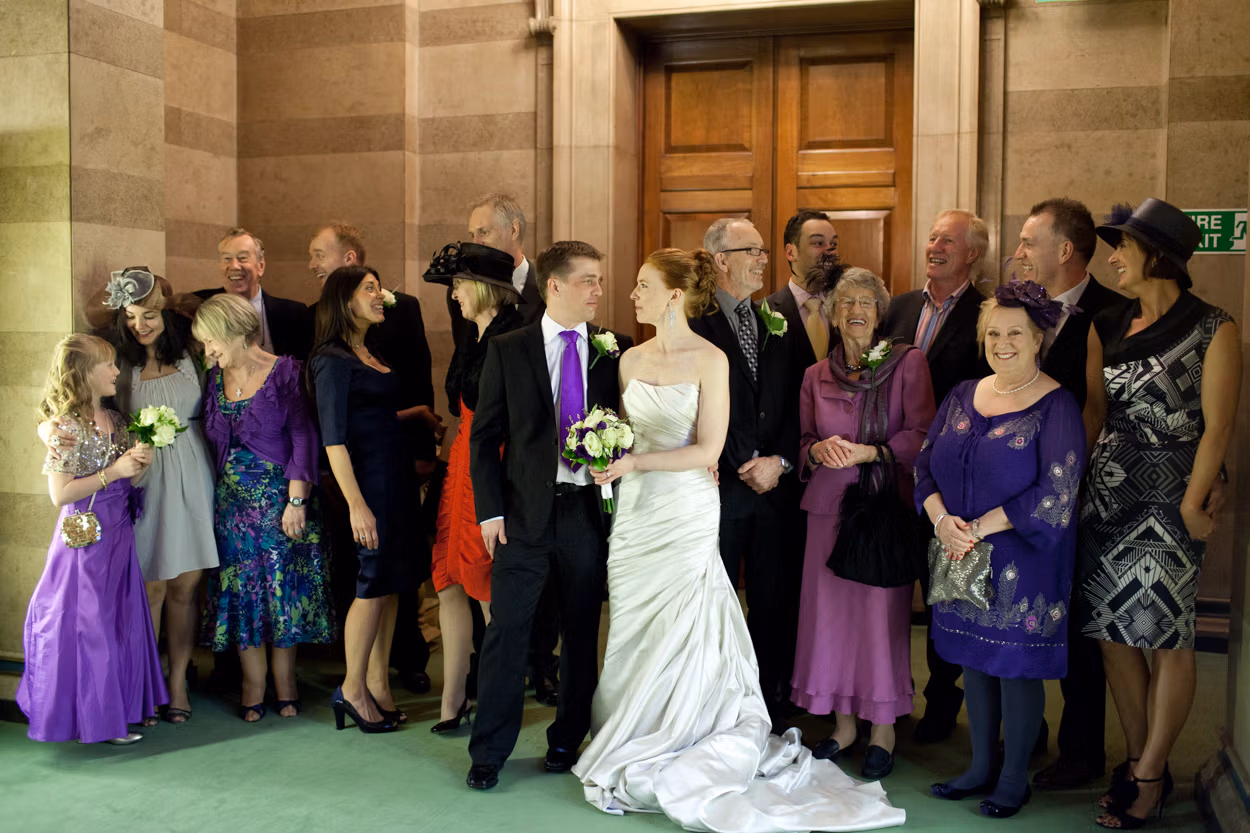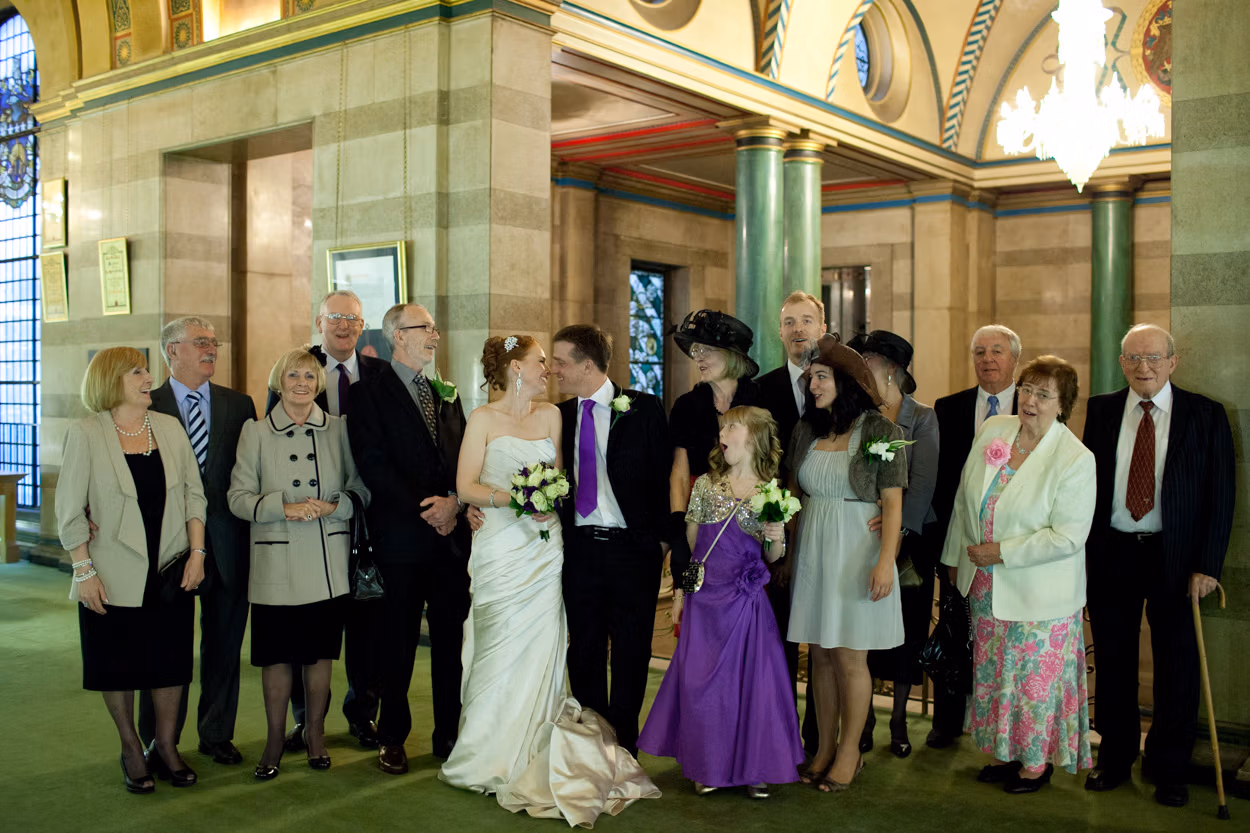 Sarah and Mark’s wedding at Leeds Civic Hall was a celebration shaped by people rather than plans — a rainy February day filled with warmth, laughter, and the steady presence of family.