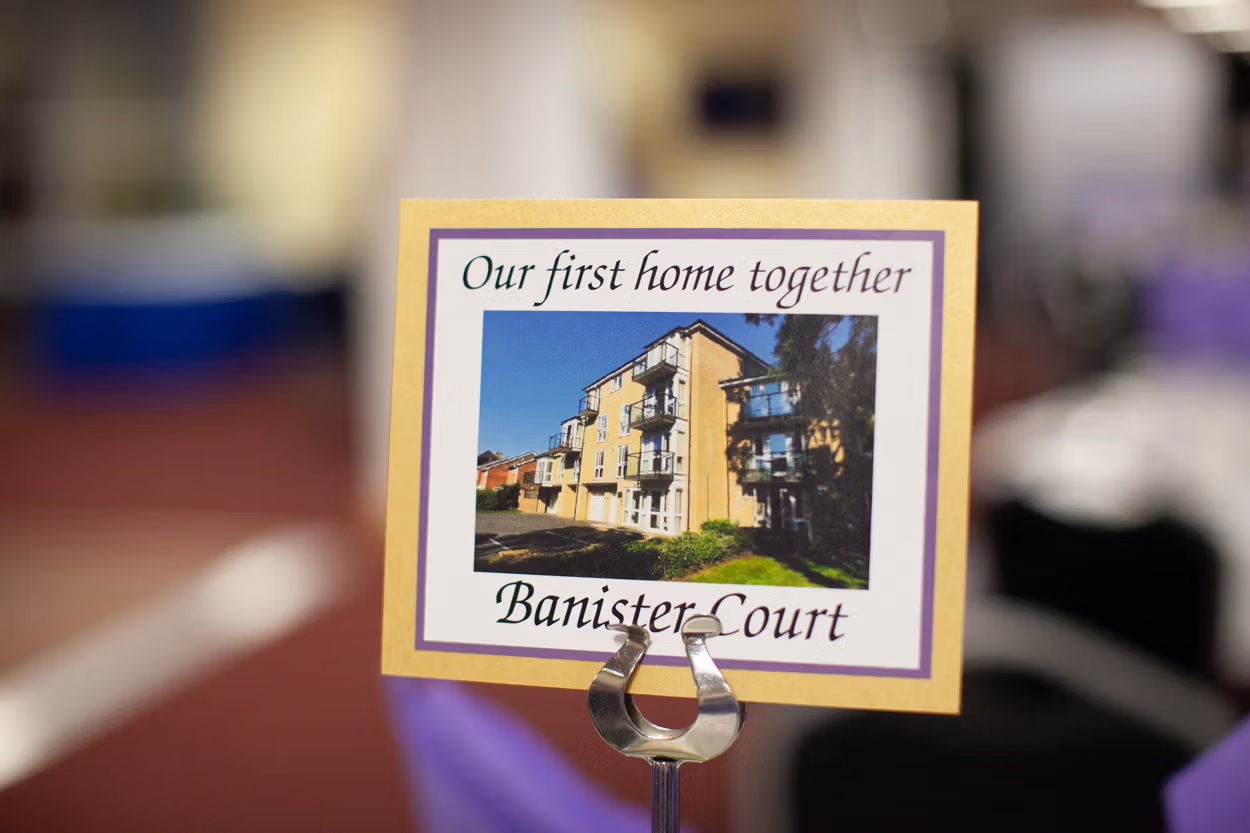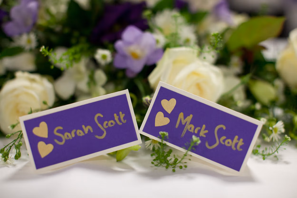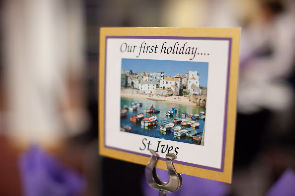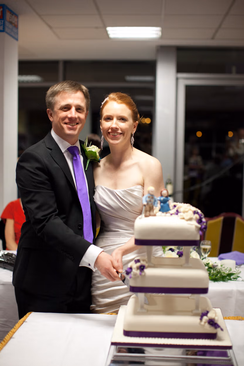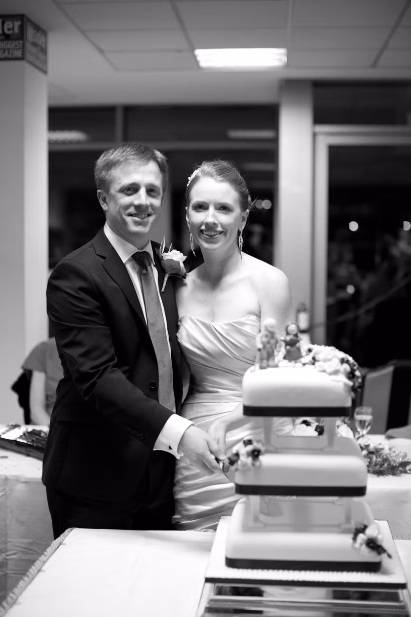 Details revealed themselves slowly. The cake topper told its own story — Mark with a hockey stick, Sarah in her nurse’s blues — playful, personal, unmistakably them. Each table carried a chapter of their life together: our eyes first met, our first kiss, our first home. Guests lingered, reading, smiling, recognising moments they’d shared along the way.