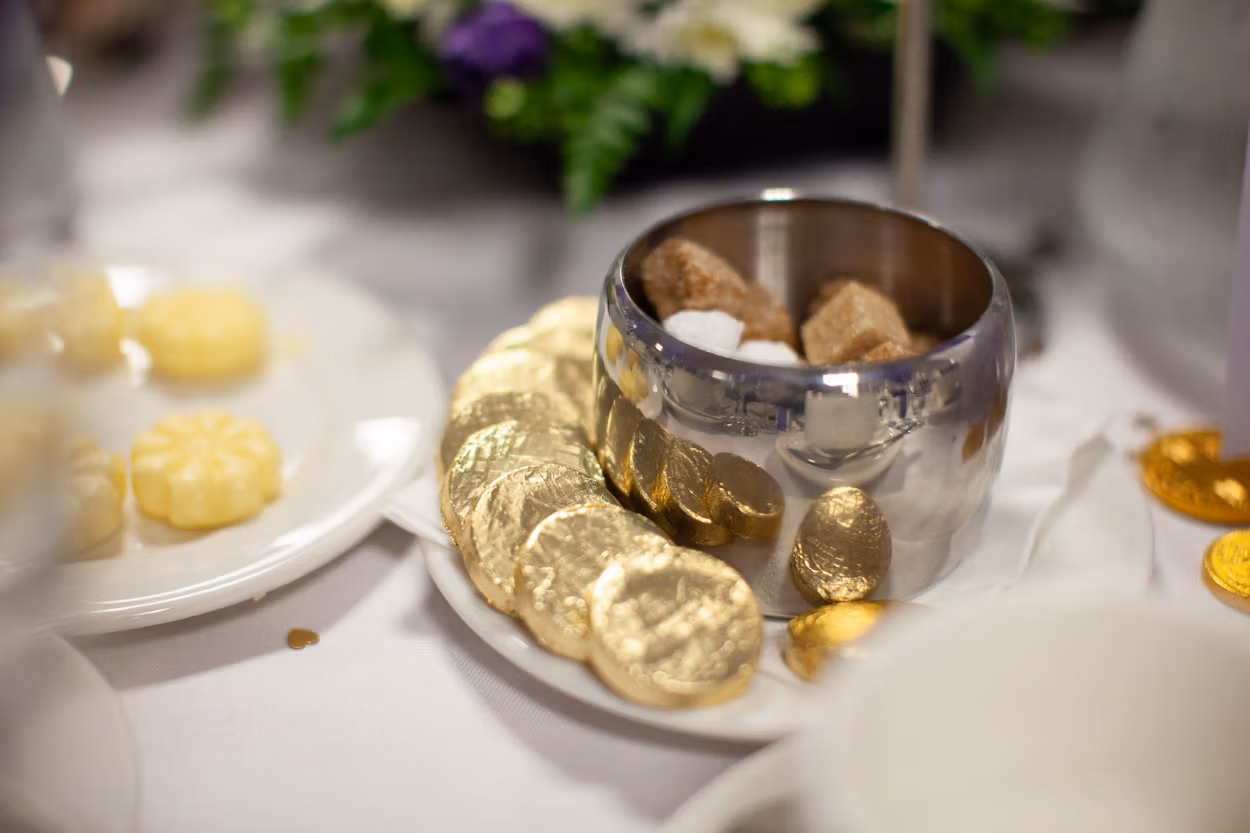 Inside the Banquet Hall at Civic Hall, the ceremony unfolded in a way I’ve never seen before. Rather than one shared hymn, every guest stood to sing a line individually — voices rising one by one around the room. It was intimate, moving, and completely their own.