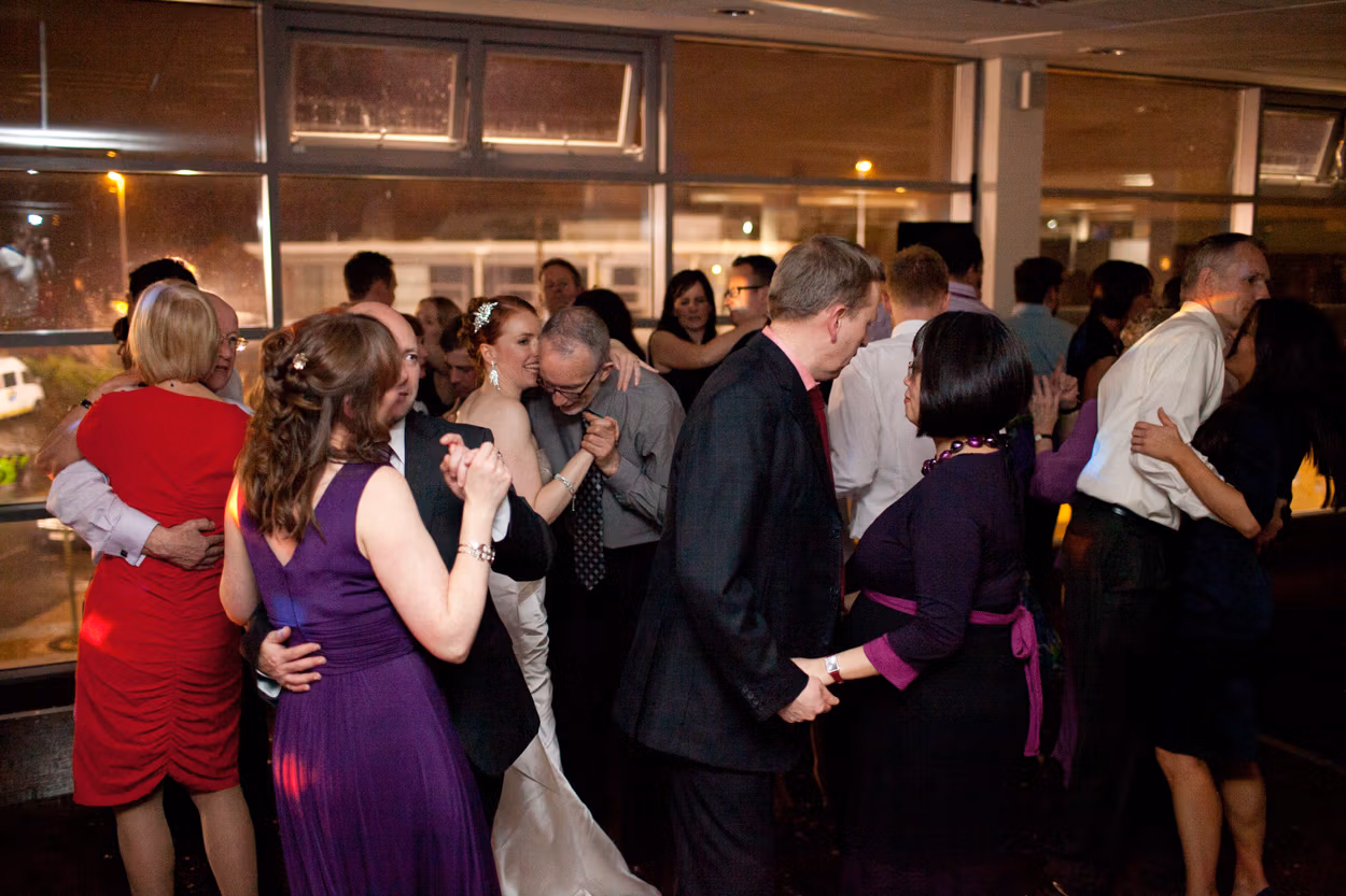 Then came the first dance. Sarah and Mark stepped onto the floor, unselfconscious and completely present. Within moments, guests followed — filling the space, the music rising, the floor busy with movement and joy. No announcement, no choreography. Just people joining in, exactly when it felt right.