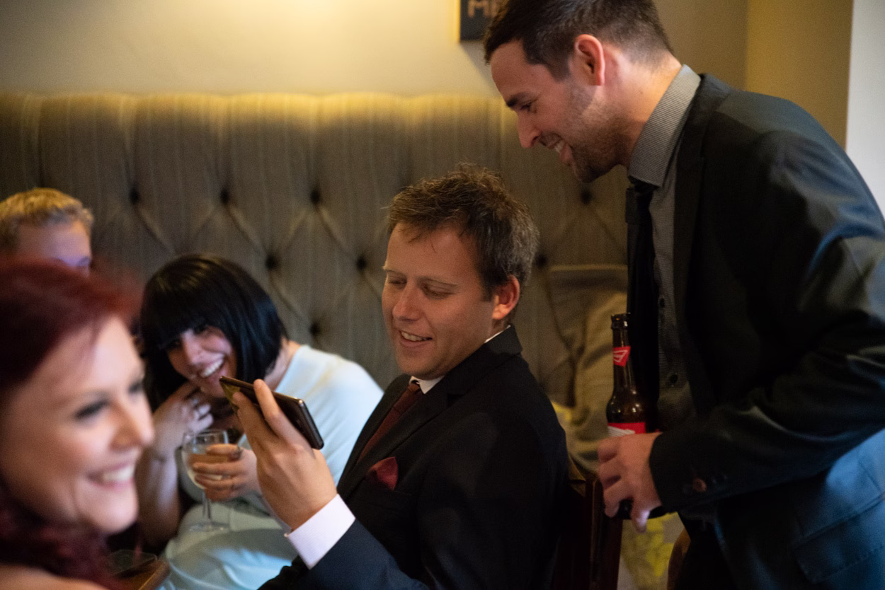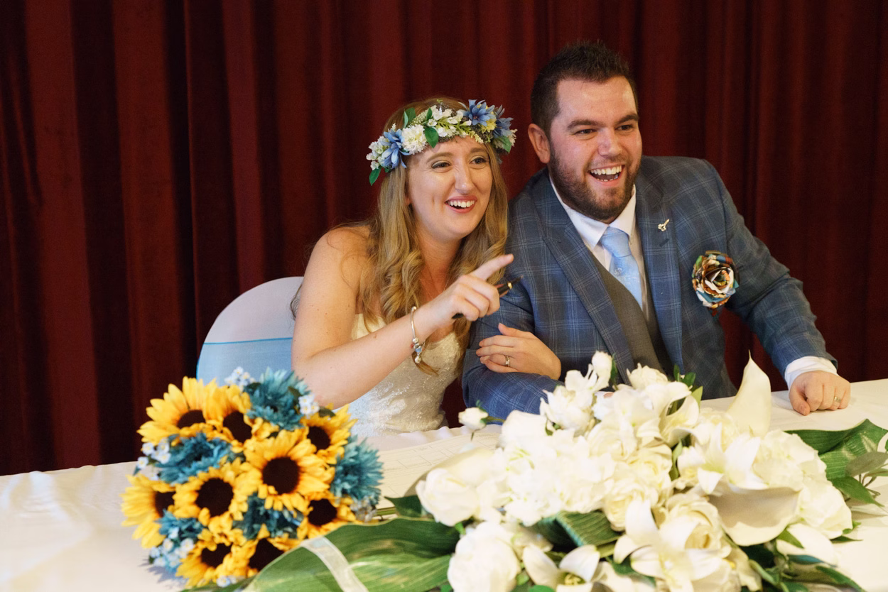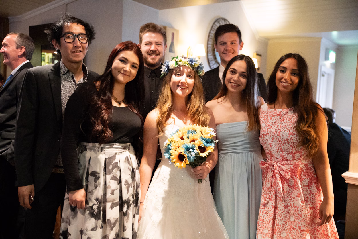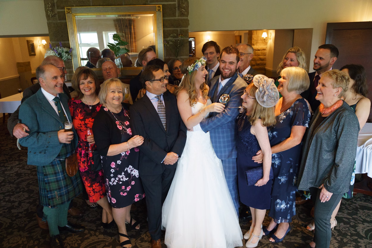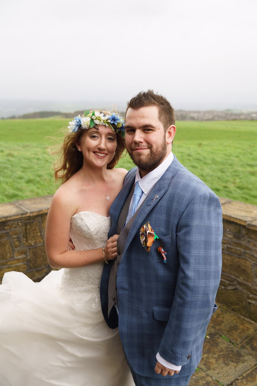 Julia and Scott were absolute stars on their October wedding at Pennine Manor Hotel in Huddersfield. The wind was wild, yet the couple—and all their guests—bravely ventured onto the helipad for the planned group photo. Hats off to everyone for embracing the gusts!