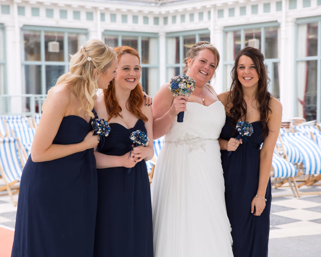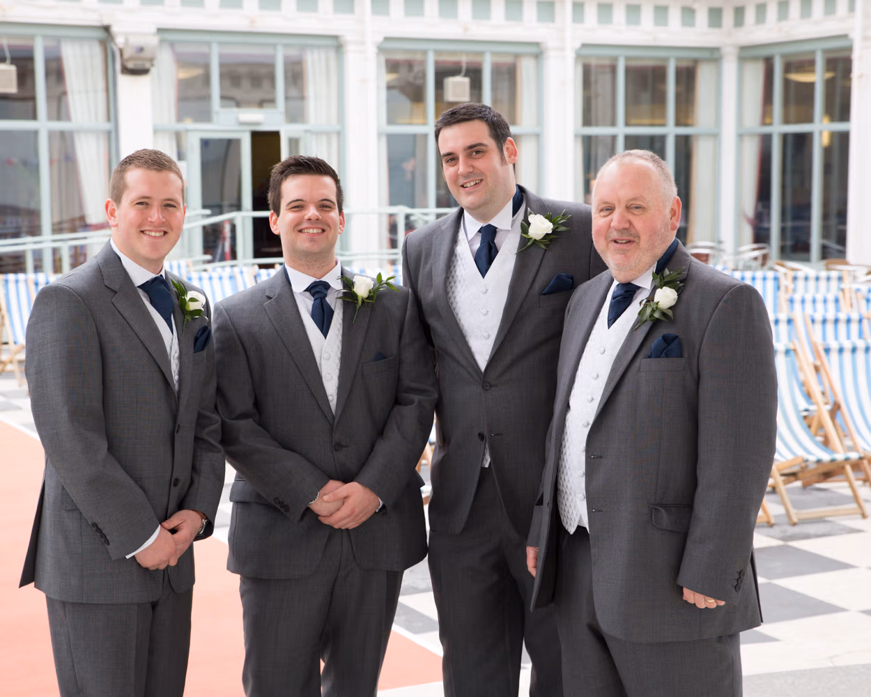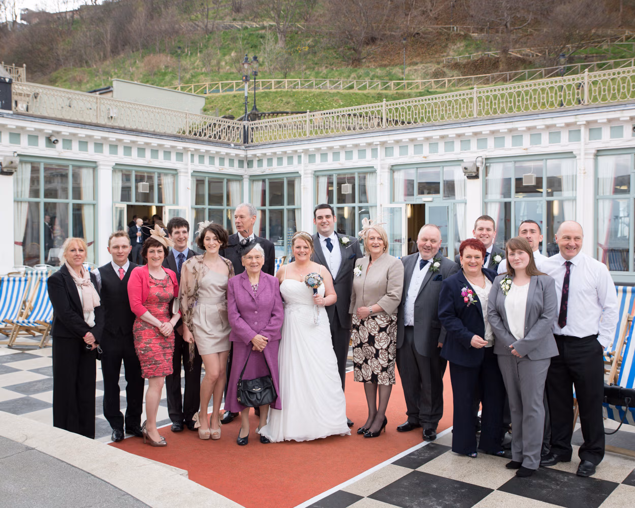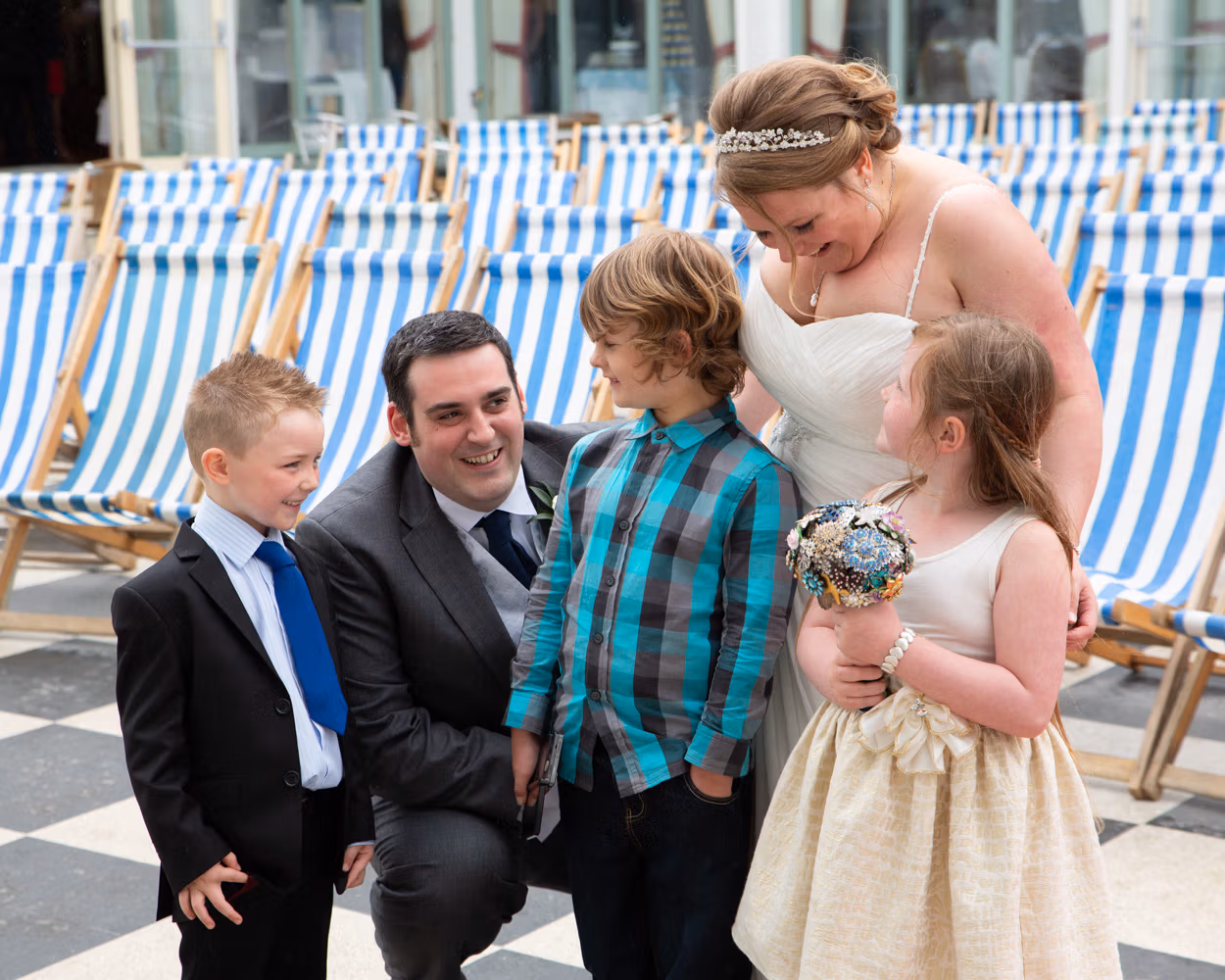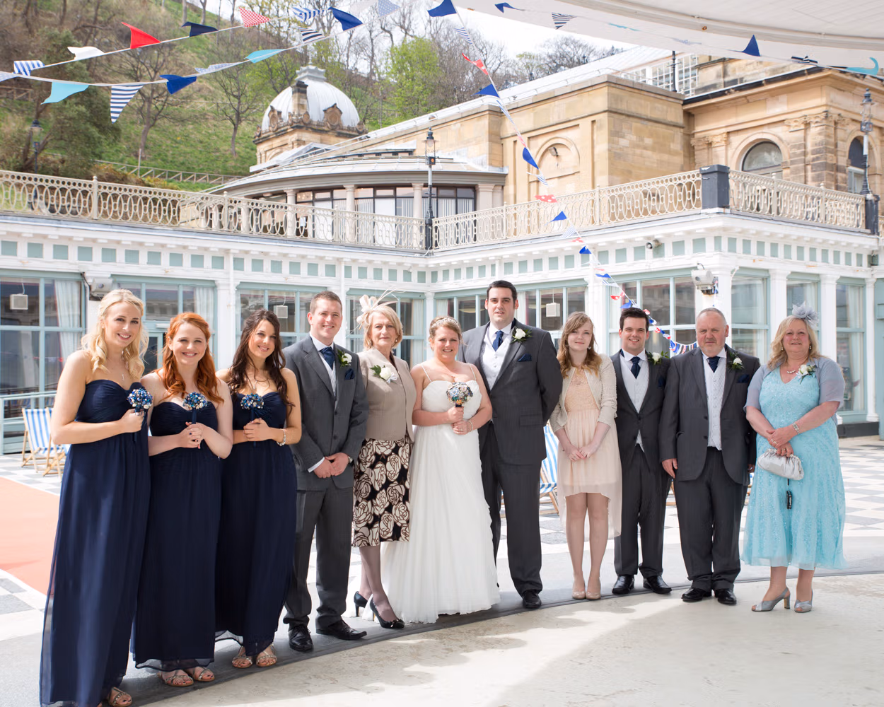 With the deckchairs and the Spa framing everything perfectly, the photos felt natural and unforced. Family gathered easily, laughter slipped in between frames, and the mood stayed playful — exactly right for a May wedding by the sea.