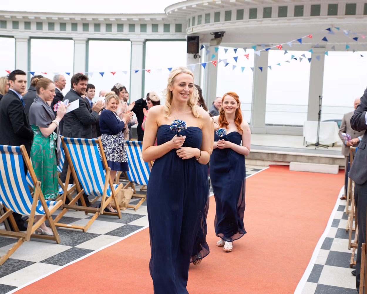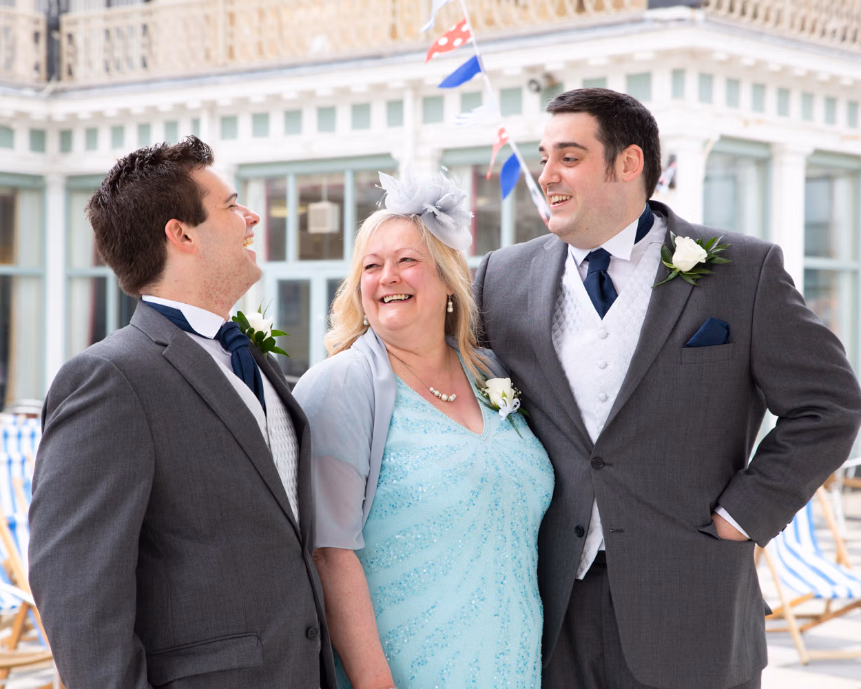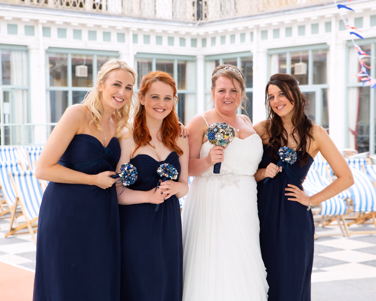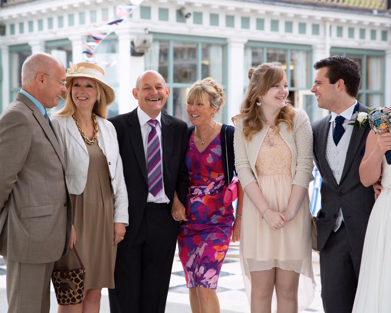 With the deckchairs and the Spa framing everything perfectly, the photos felt natural and unforced. Family gathered easily, laughter slipped in between frames, and the mood stayed playful — exactly right for a May wedding by the sea.
