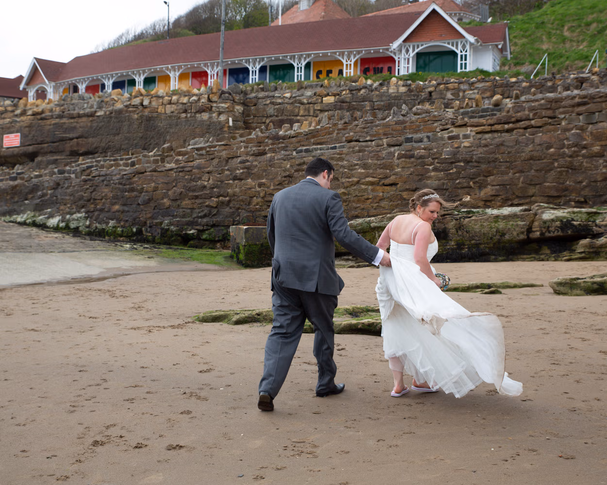 There was time to breathe, to connect, and to enjoy the coast together — personality shining through in every frame. Then, just as naturally, they made their way back up to Scarborough Spa, ready to rejoin their guests for the wedding breakfast.