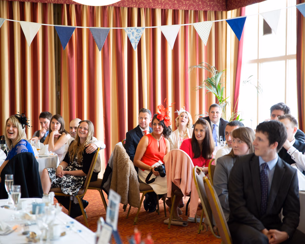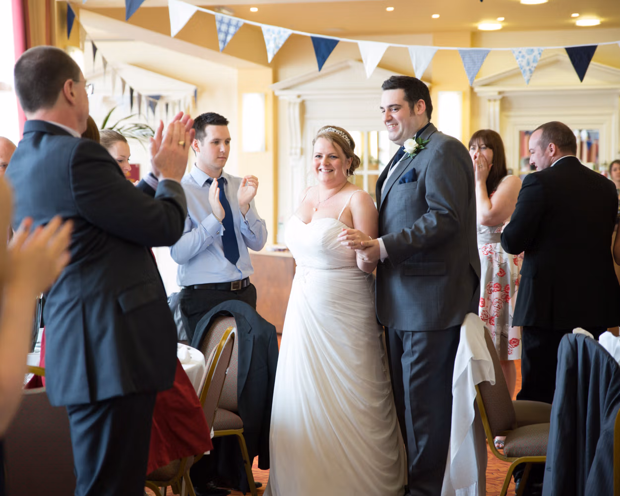 Lisa and Oliver entered to warm applause and smiling faces — the kind of welcome that instantly softens any nerves. Speeches came before the food, often a brave move, but here it worked perfectly. Laughter settled the room, emotions landed gently, and no one seemed to mind the wait.