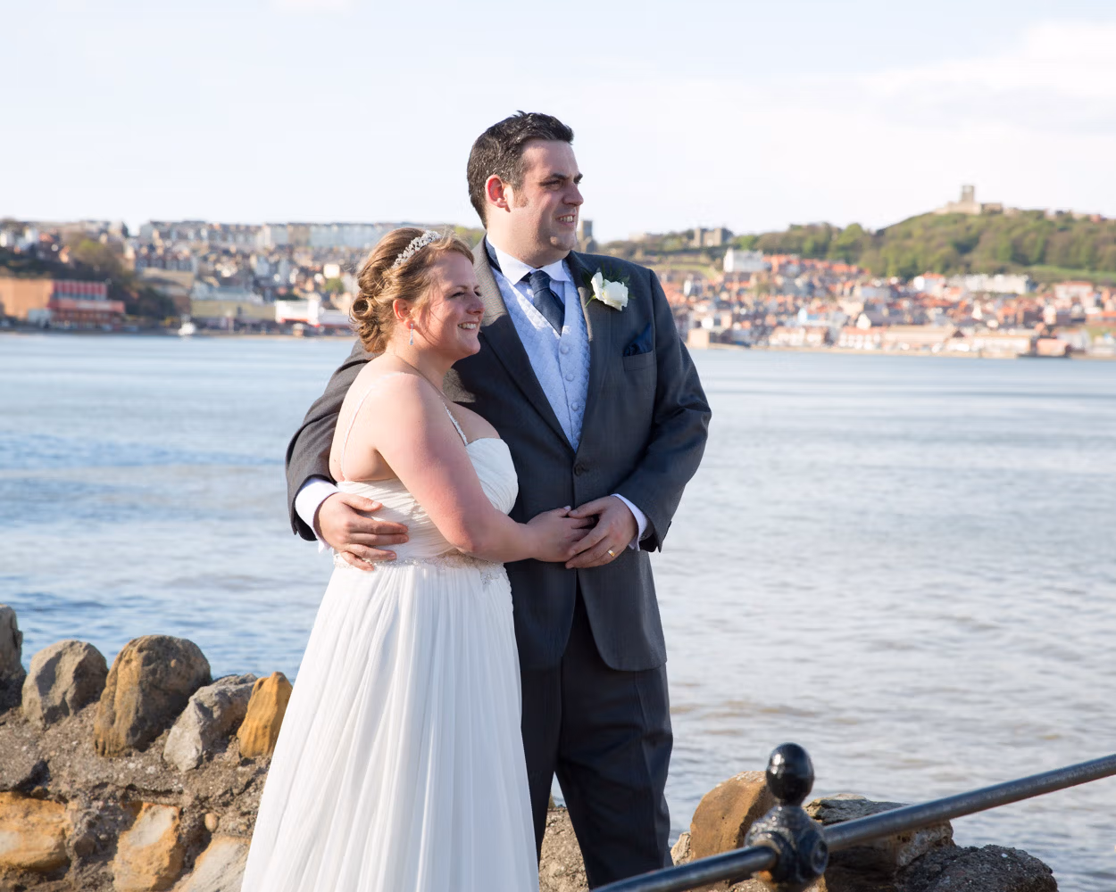 This wedding took place across the promenade, pavilion, and shoreline at Scarborough Spa, with portraits made along the coast and celebrations continuing indoors.