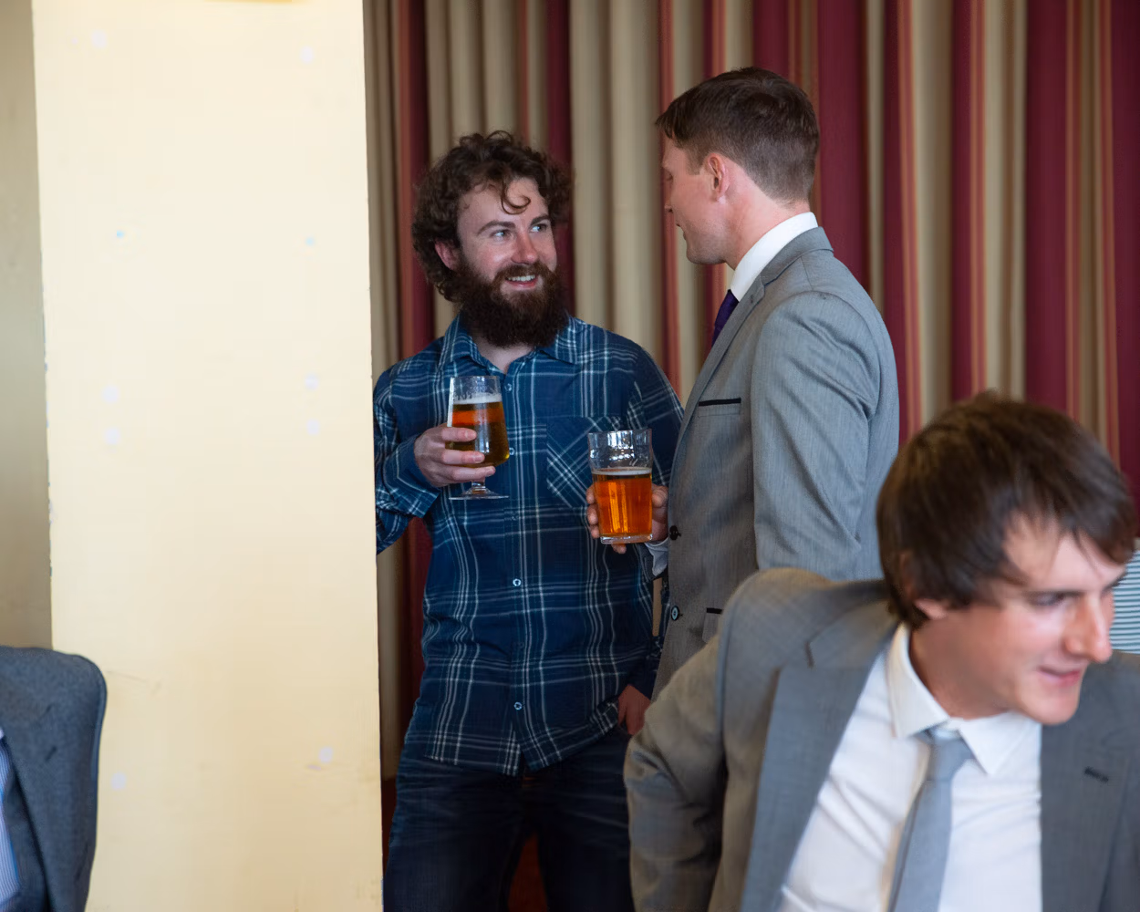 Inside the pavilion, the groom and his best man waited together. I interrupted them gently for a few relaxed photographs — quiet anticipation, shared smiles, and that sense of everything about to begin.