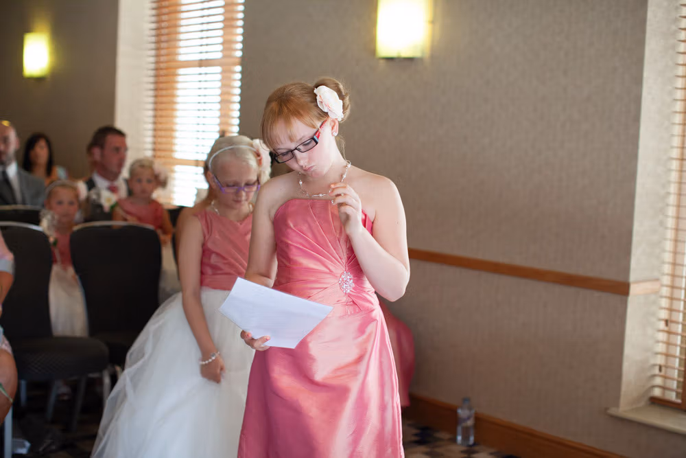 Gemma’s mum was close by, helping with final touches while her daughters twirled in excitement. Between quiet moments and bursts of joy, the preparations felt warm, personal, and full of family energy. It was the perfect build-up to what would become a heartfelt Leeds wedding celebration.