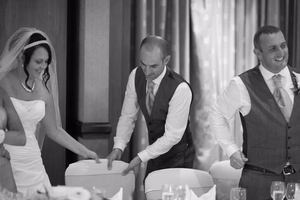 I kept my focus on the real connections: hugs between friends, smiles across the tables, and those fleeting in-between moments. This is what I love most about being a documentary wedding photographer at Thorpe Park Leeds — capturing the spirit of the day as it truly unfolded.