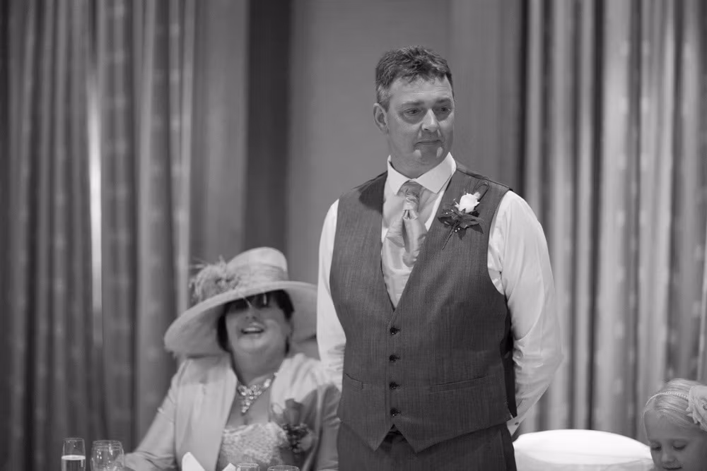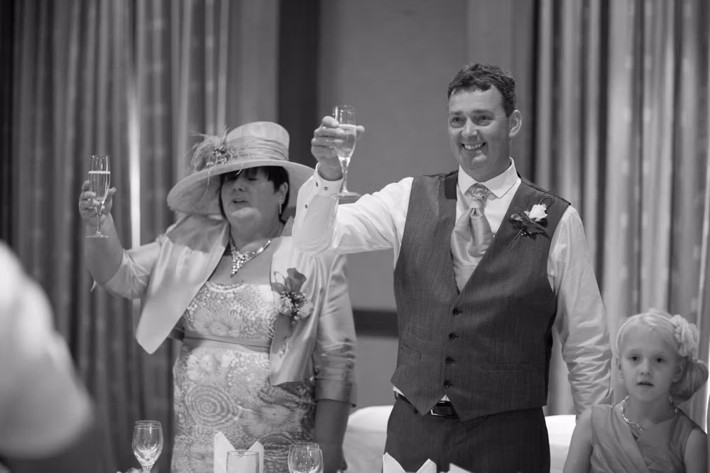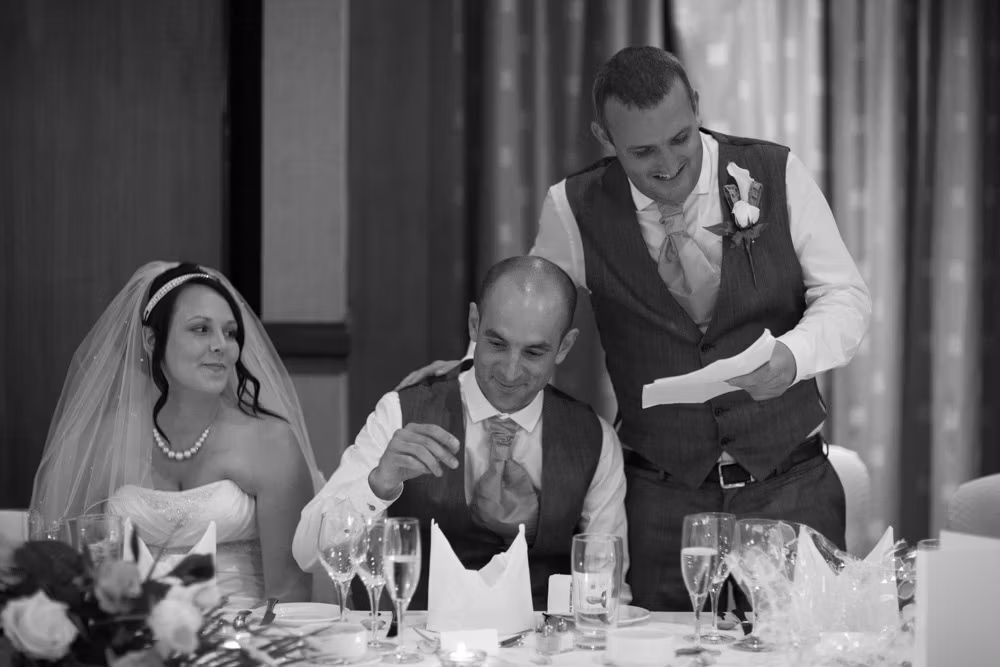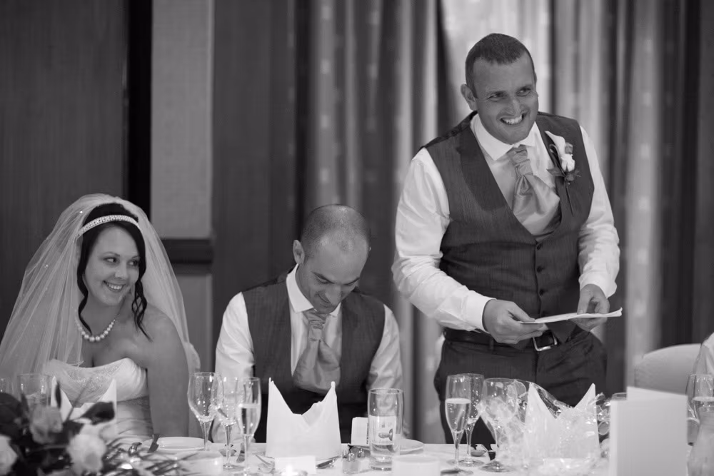 Gemma & Dave’s entrance was full of celebration, greeted with clapping and cheers before the speeches began. The father of the bride raised the first toast, followed by heartfelt words from Dave and plenty of fun from the best man.