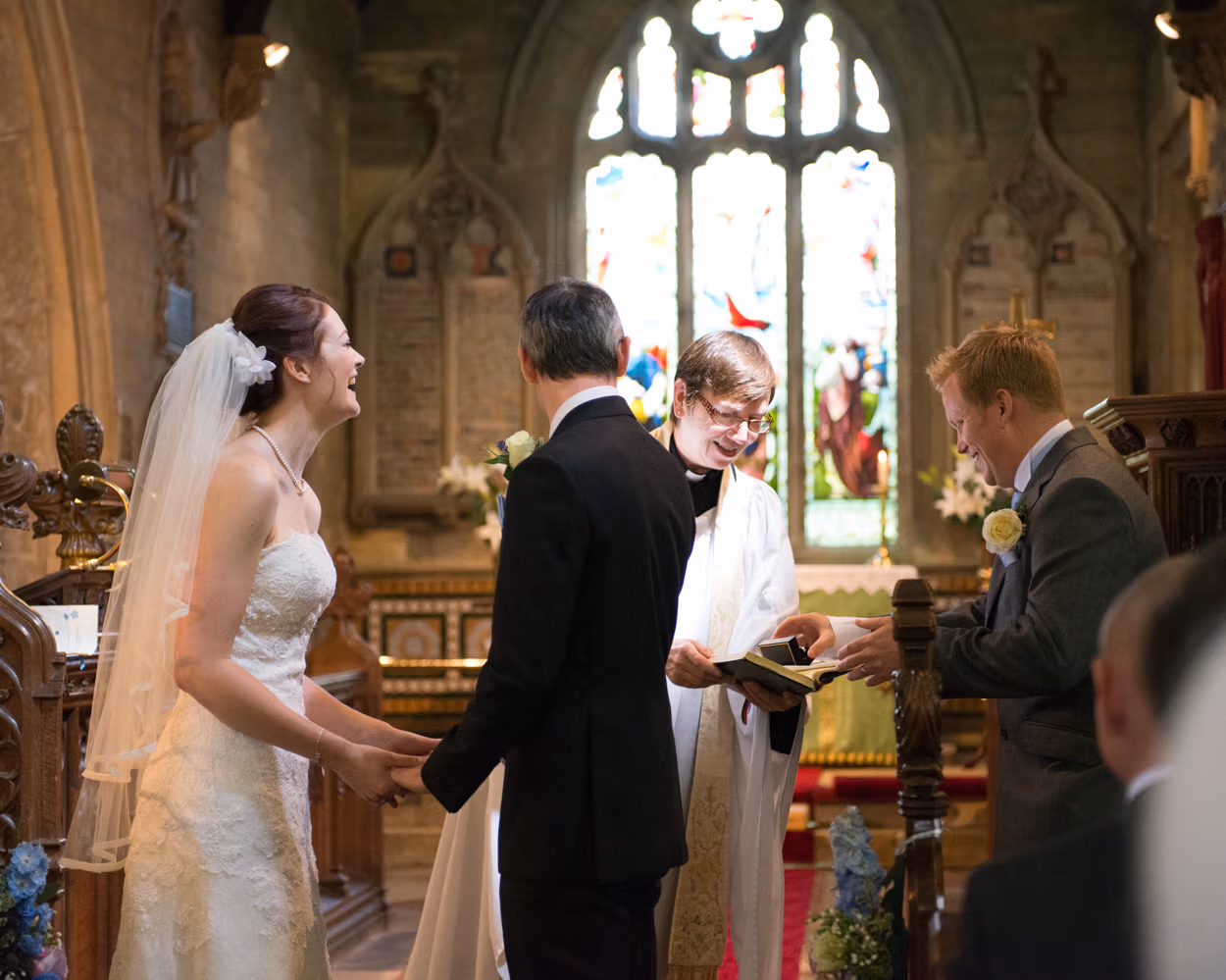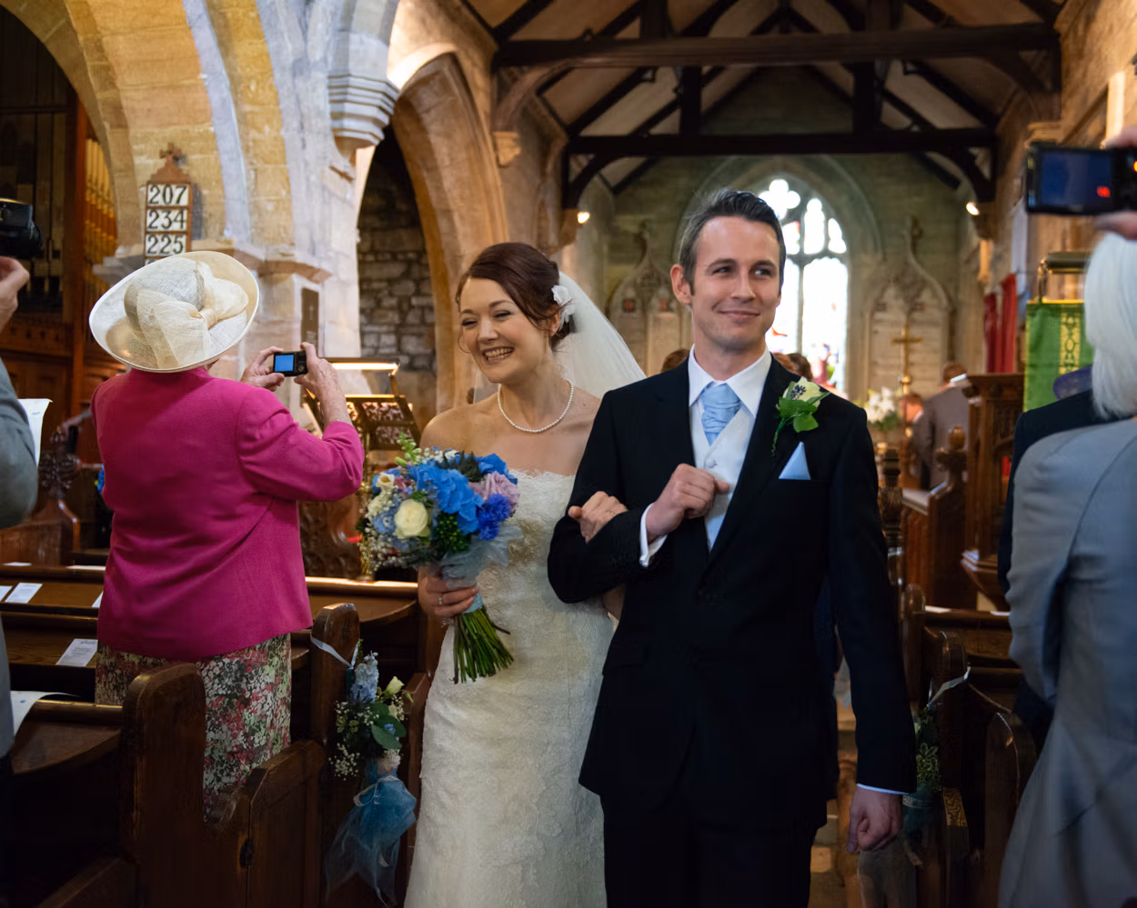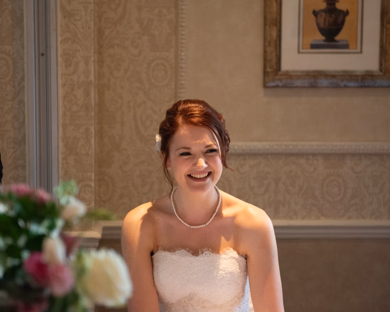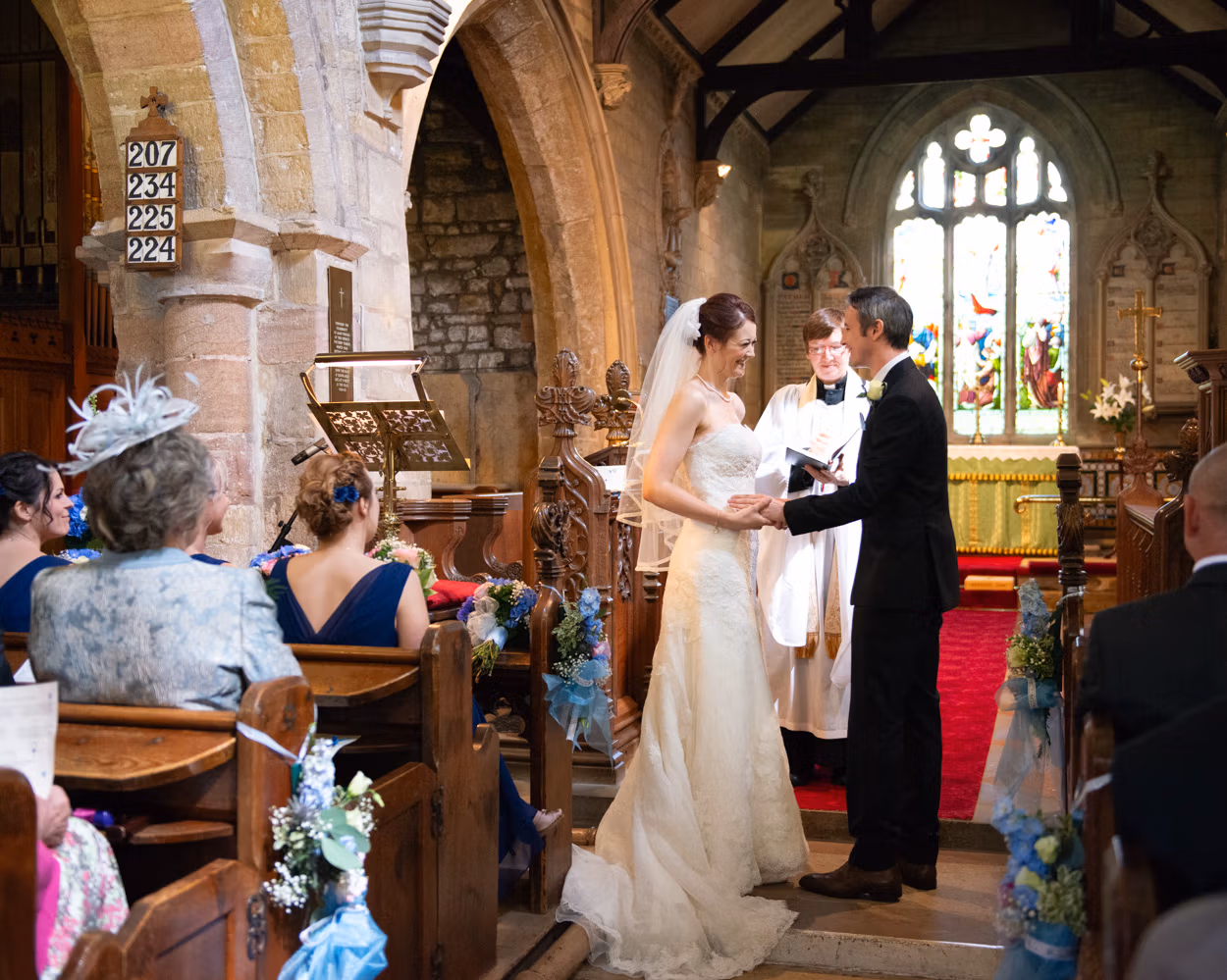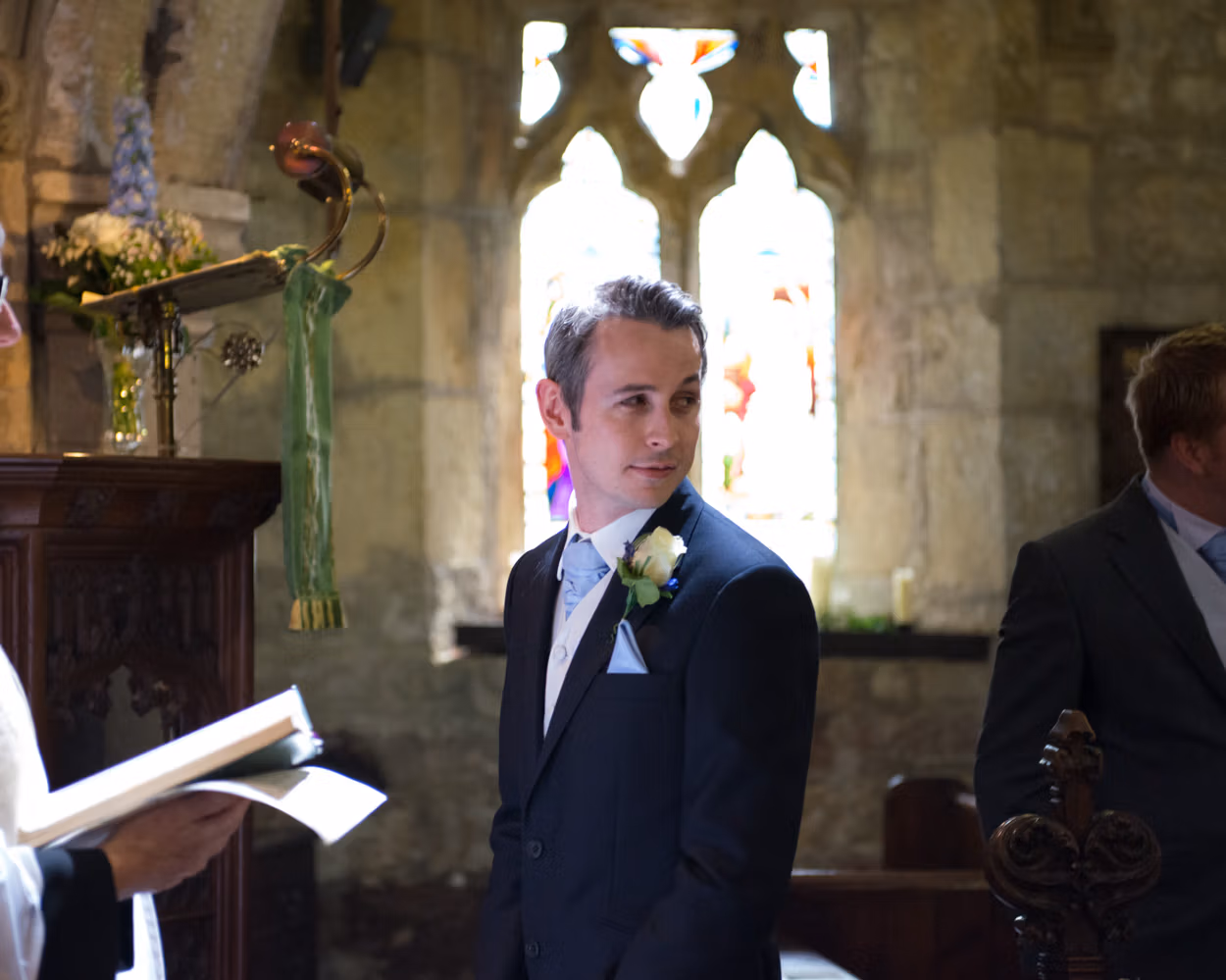 Inside, the ceremony unfolded with a gentle ease. Paul turned as Tanya arrived with her mum, smiles carried through the aisle and into the vows that followed. Hands met, rings were exchanged, and a quiet warmth settled across the room.