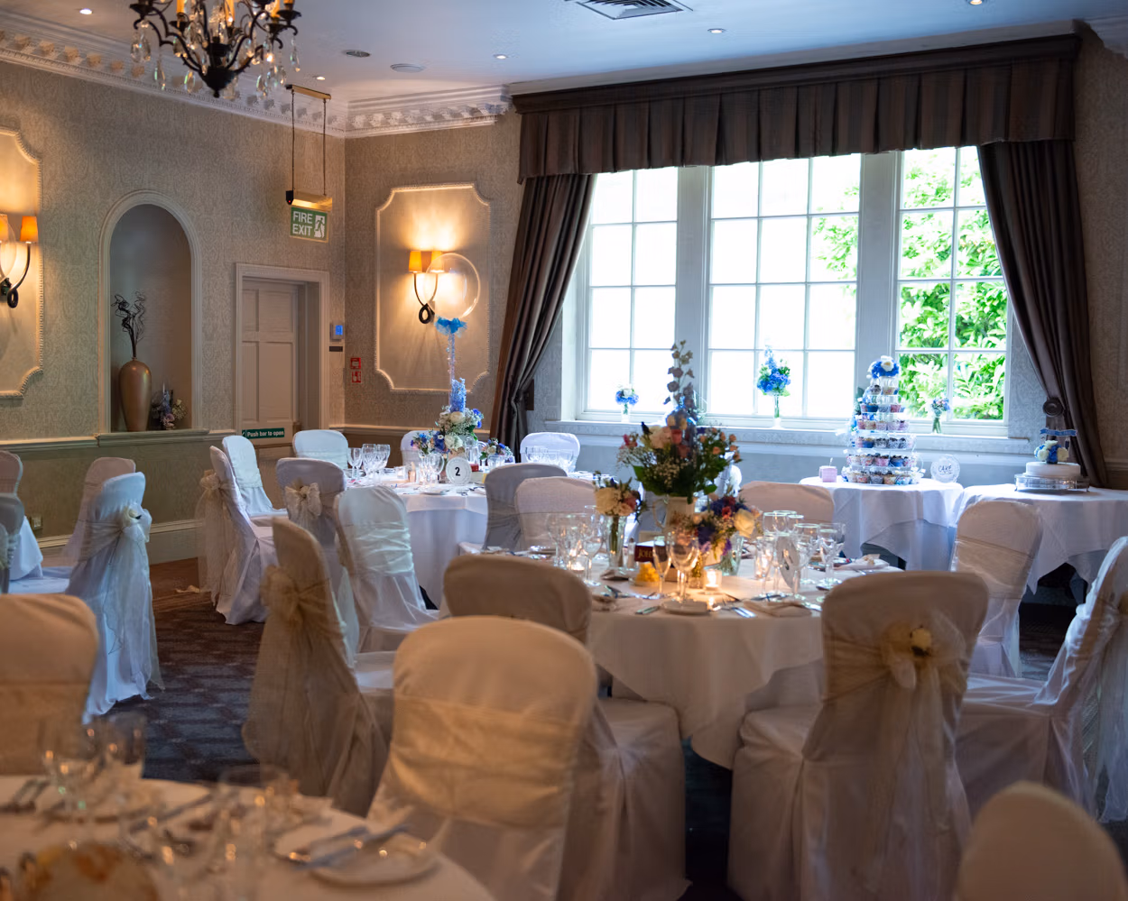 Wood Hall Hotel & Spa is a country house set within wide, open grounds near Wetherby. With its light-filled rooms, sweeping lawns, and views across the surrounding landscape, it offers a setting that moves easily from relaxed summer gatherings to softly lit evening celebrations.