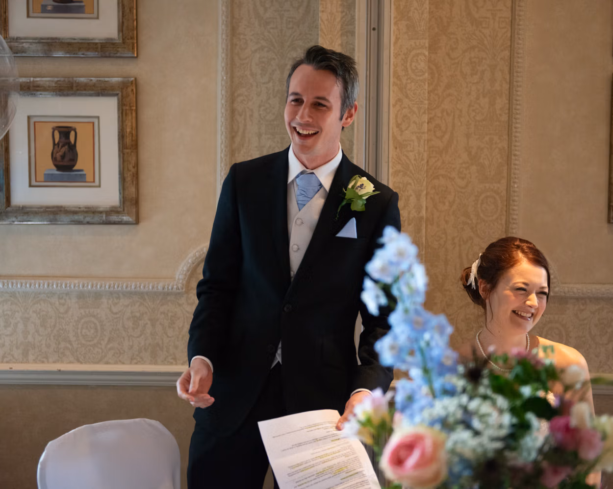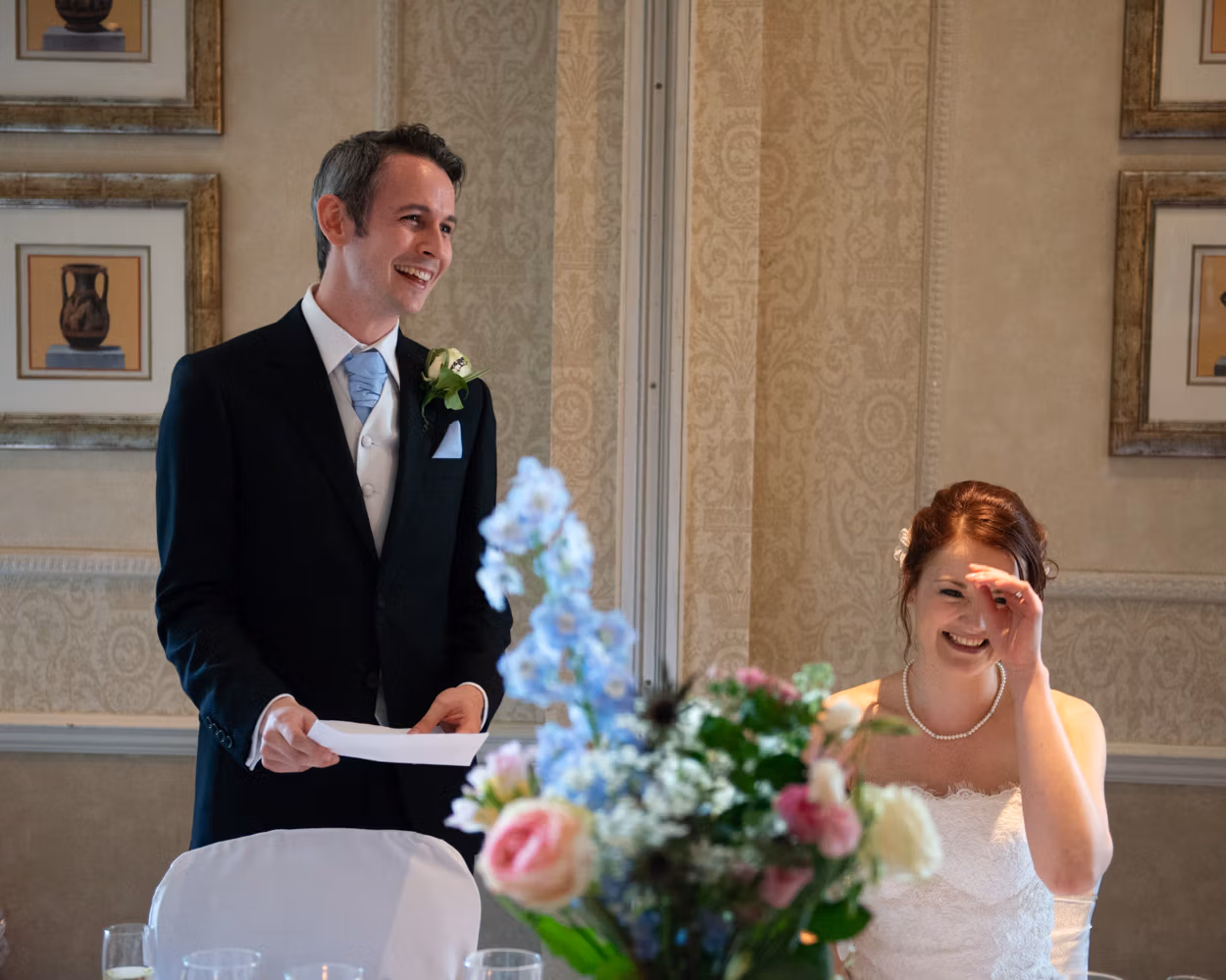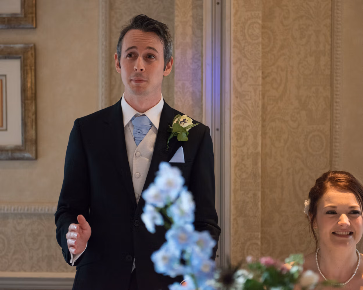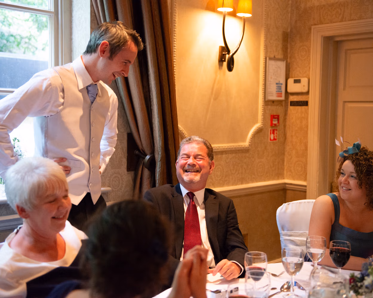 Glasses were raised as speeches began — Tanya’s mum, Paul’s dad, then Paul himself, followed by the best man. Laughter moved easily between moments of pride and quiet emotion, a few glances exchanged, the room lifting and settling again as each voice carried through.