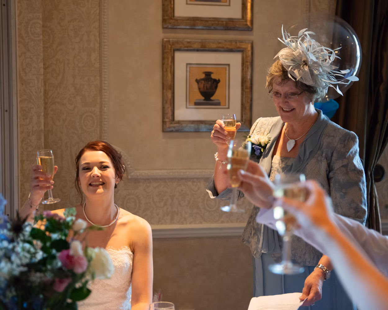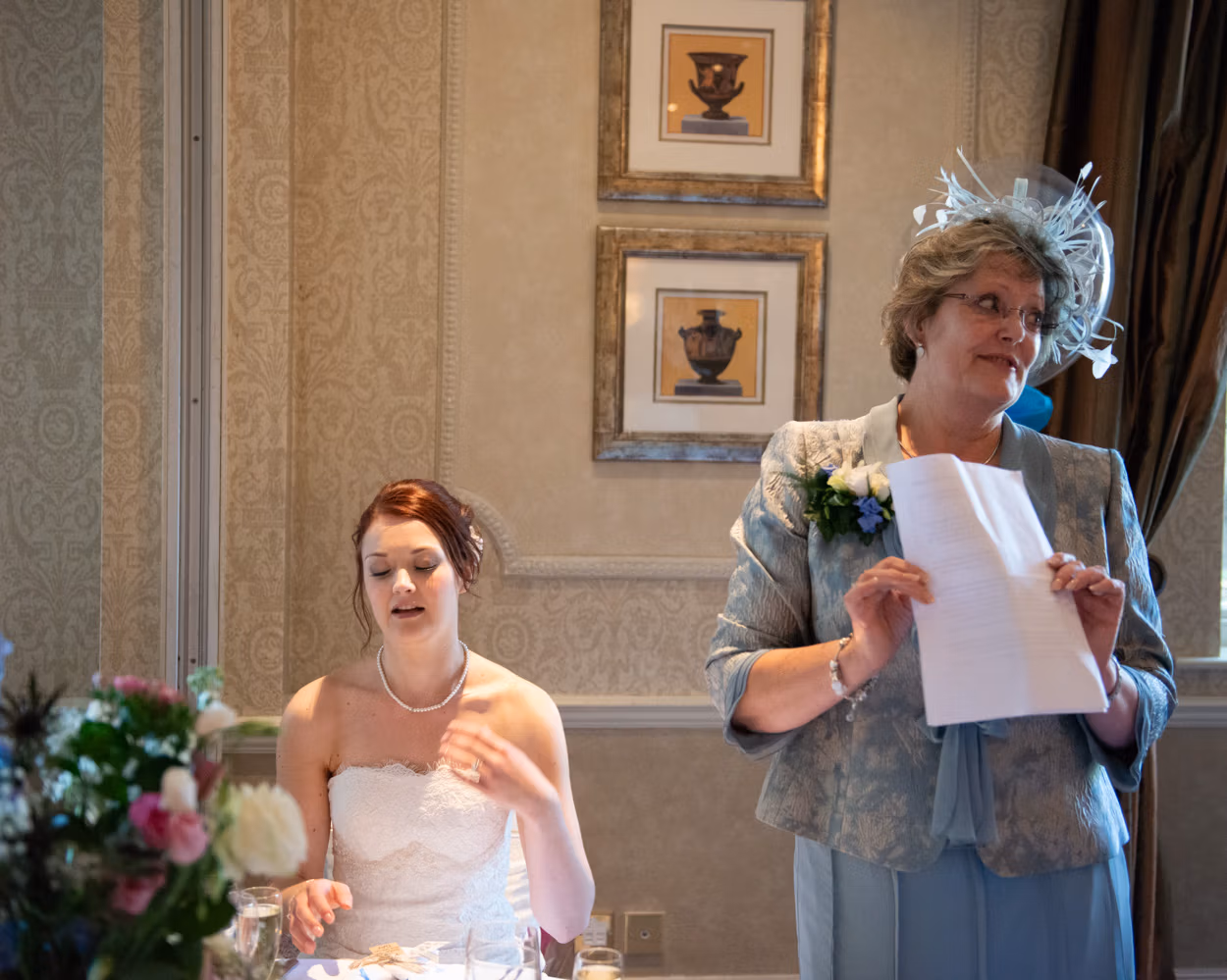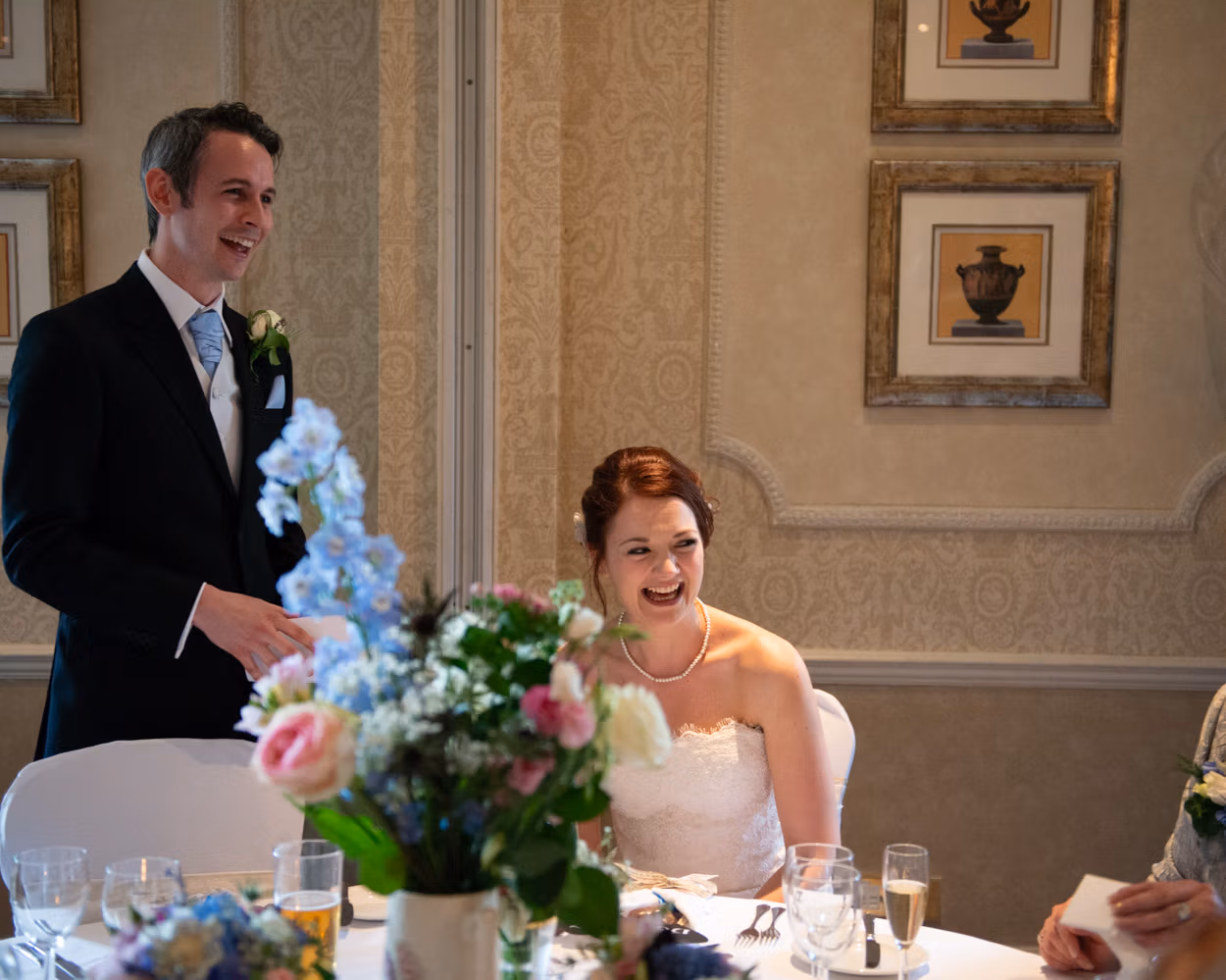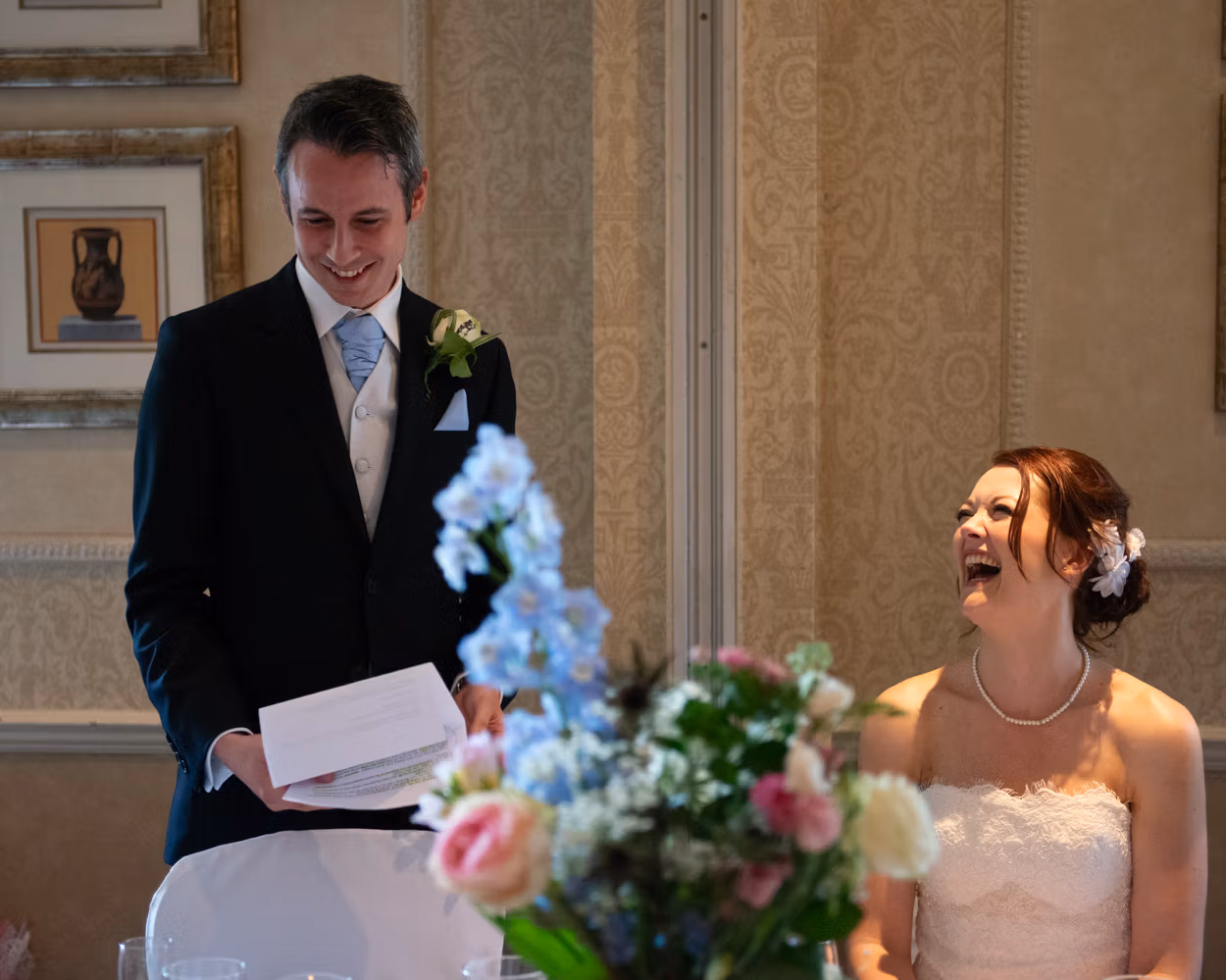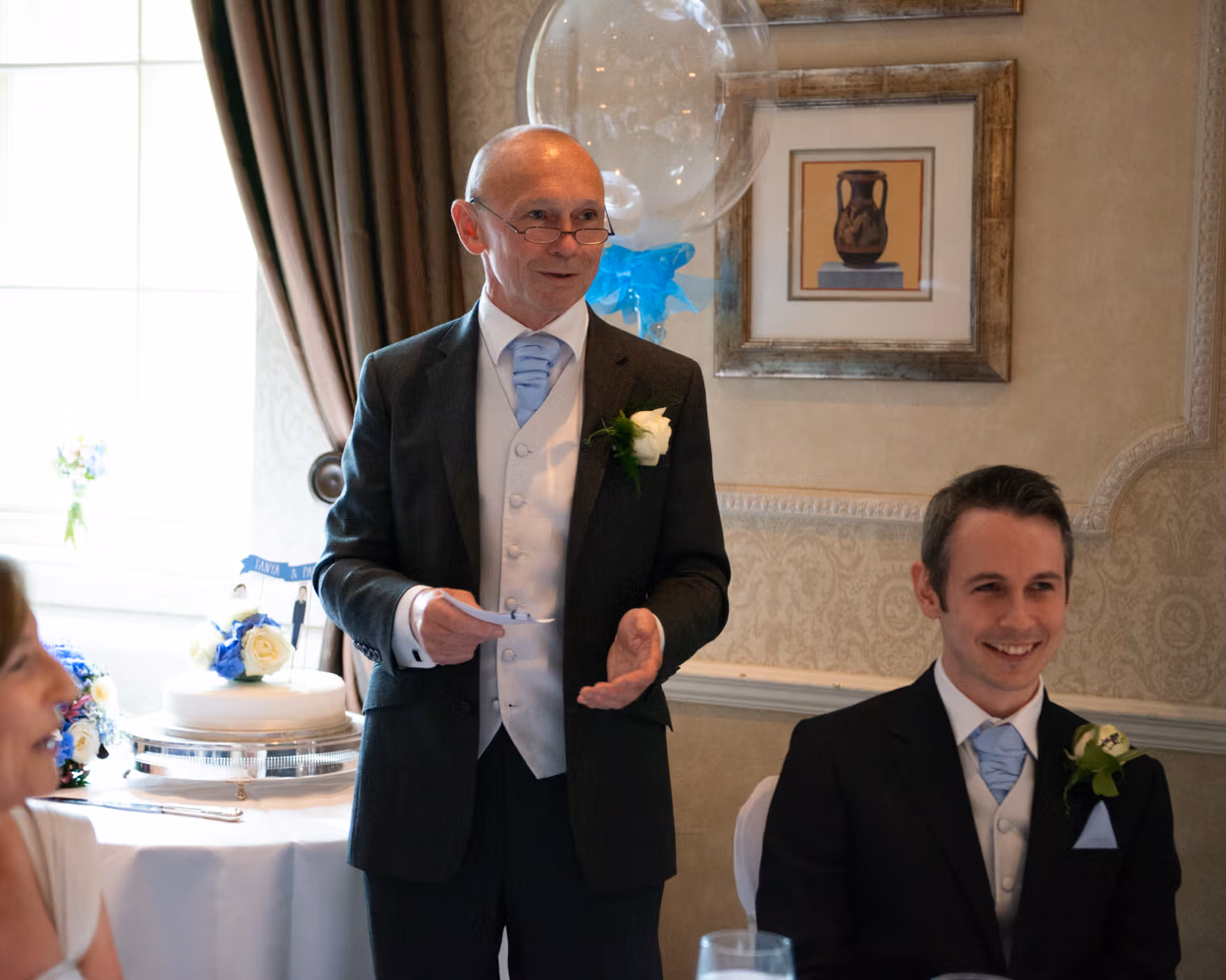 Glasses were raised as speeches began — Tanya’s mum, Paul’s dad, then Paul himself, followed by the best man. Laughter moved easily between moments of pride and quiet emotion, a few glances exchanged, the room lifting and settling again as each voice carried through.