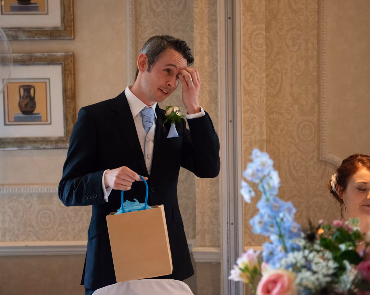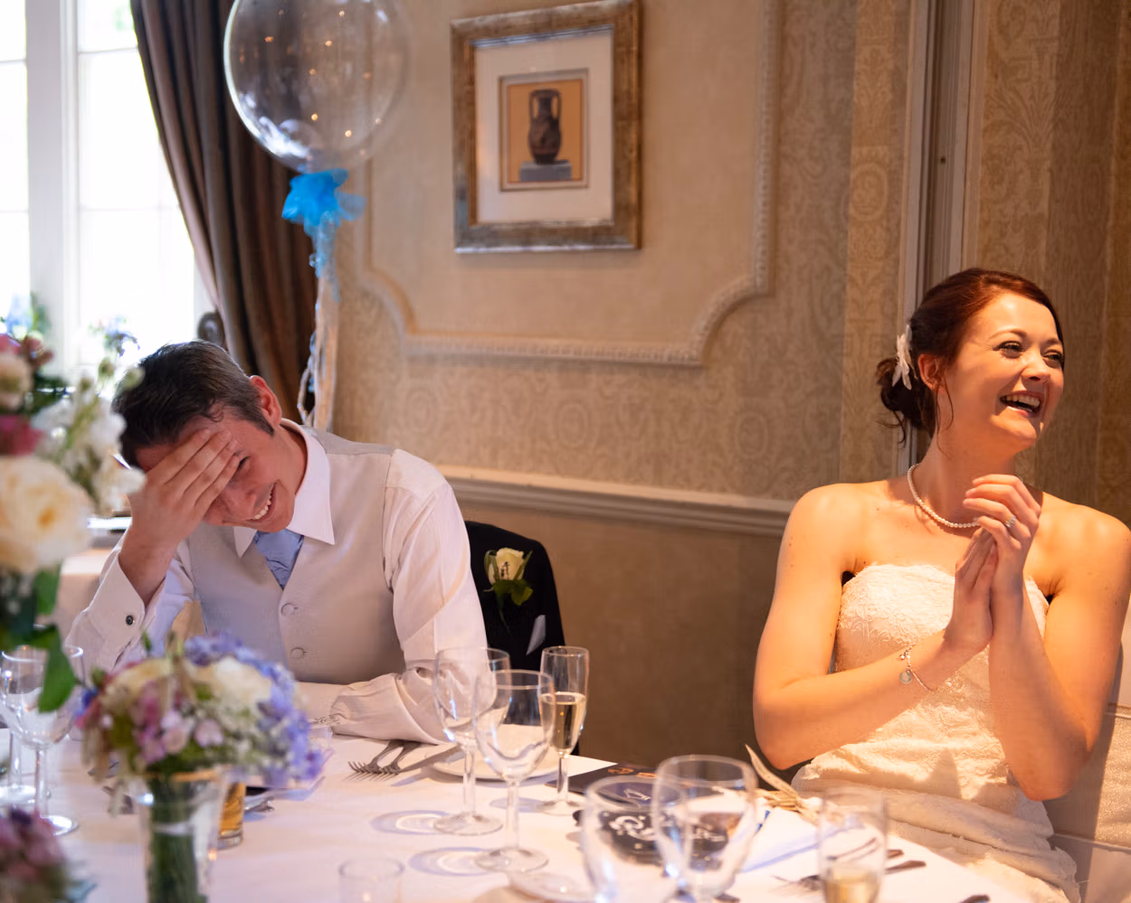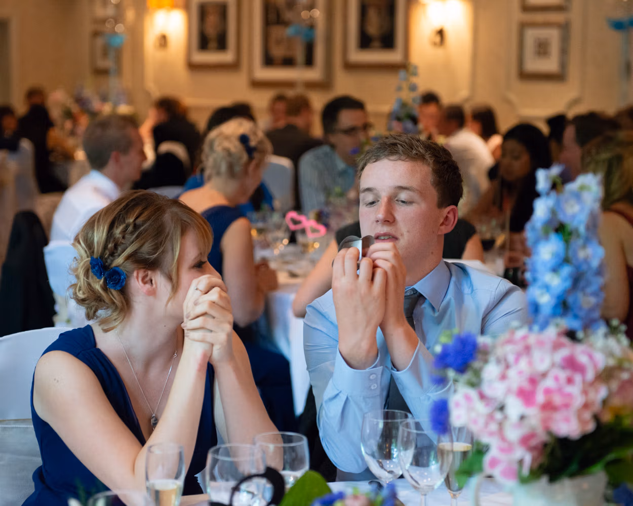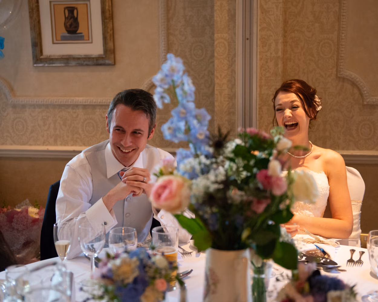 Glasses were raised as speeches began — Tanya’s mum, Paul’s dad, then Paul himself, followed by the best man. Laughter moved easily between moments of pride and quiet emotion, a few glances exchanged, the room lifting and settling again as each voice carried through.