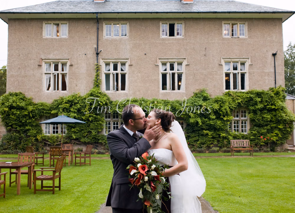Just before the rain returned, we stepped outside for one last image — the lush grass vibrant, Woodborough Hall in the background, and one simple kiss in the soft drizzle. A favourite, quietly encapsulating their day.