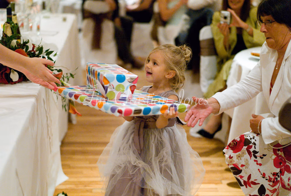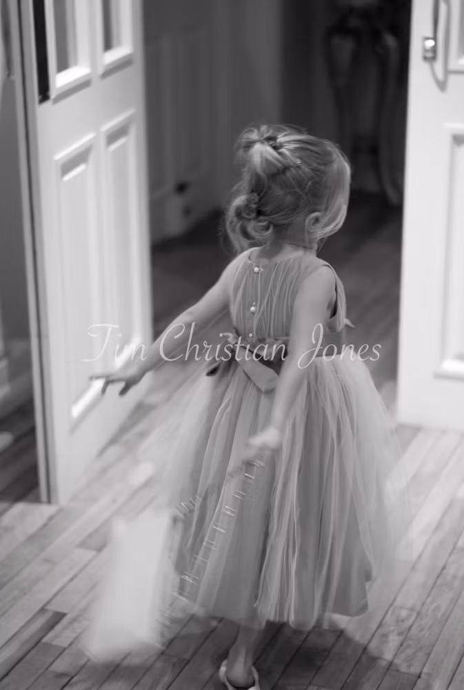 After walking back down the aisle, their daughter reached playfully for Julie’s veil, just out of reach. A tiny, unposed moment that added even more authenticity to the day.