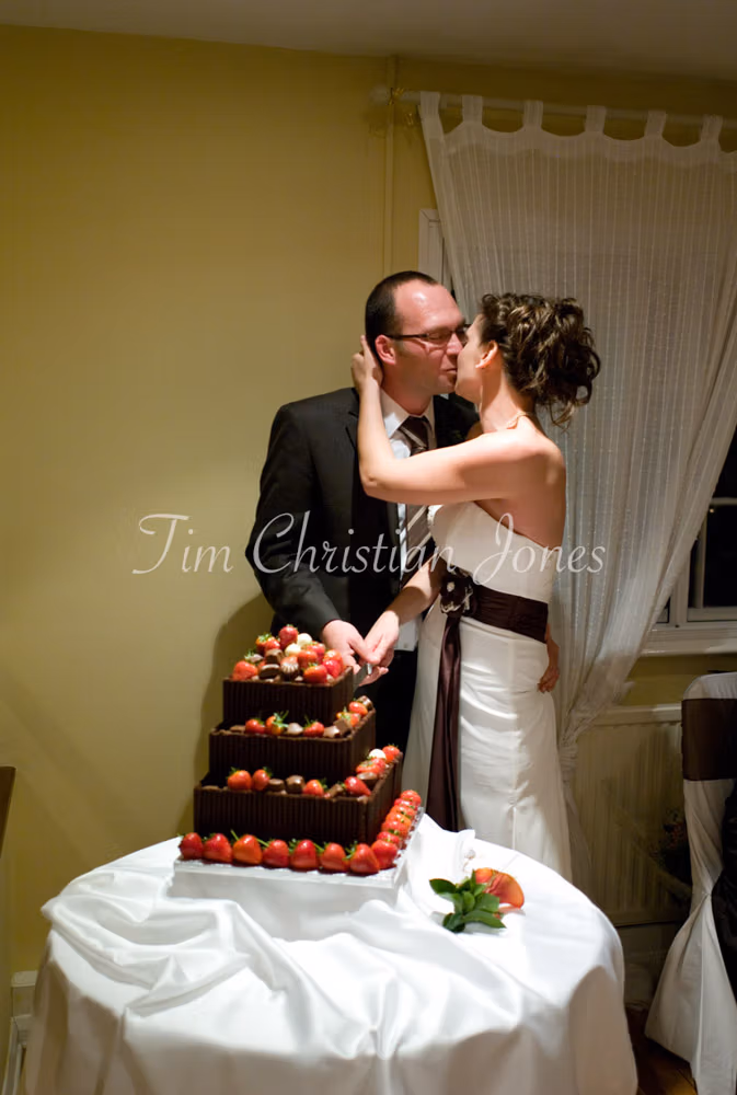 Julie and Pat’s chocolate wedding cake, adorned with fresh strawberries, looked almost too good to cut. Impromptu family photos, heartfelt hugs, and playful moments (Julie’s dad sneaking in a joke or two) made the morning unforgettable.